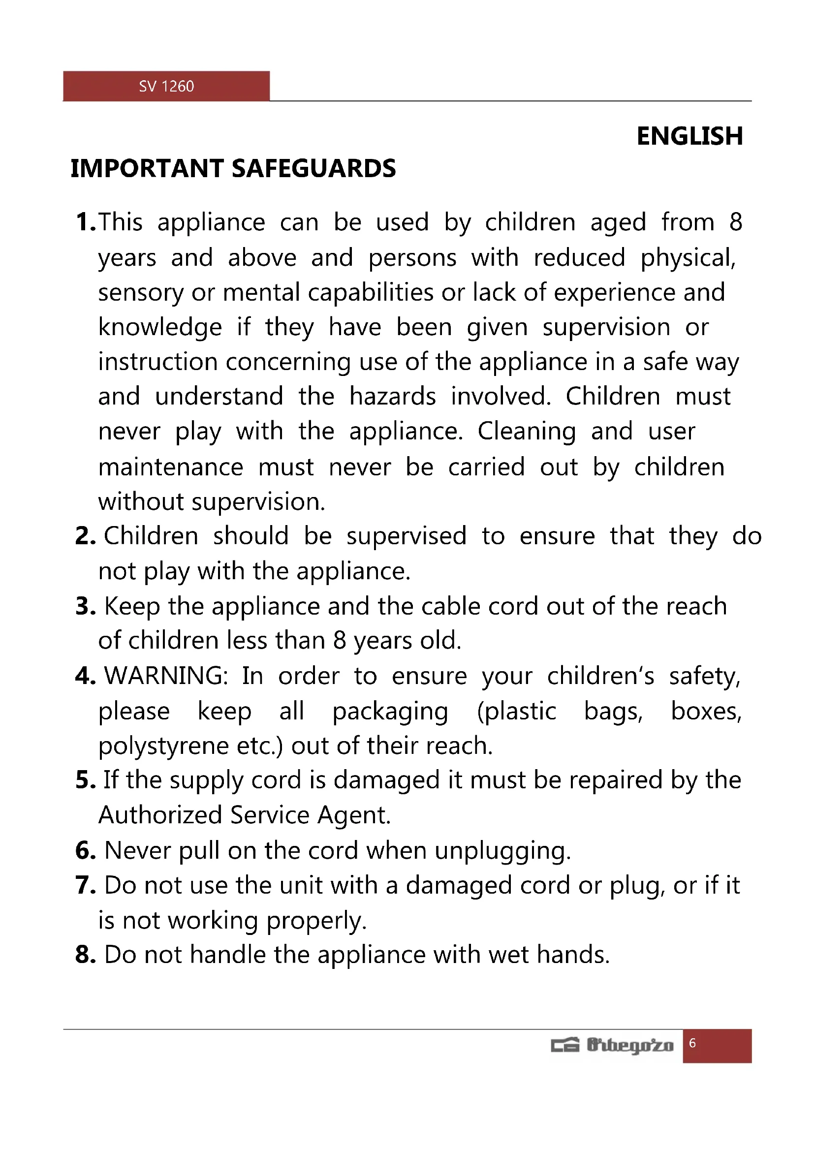 Find the device manual for free SV 1260 Orbegozo in PDF.