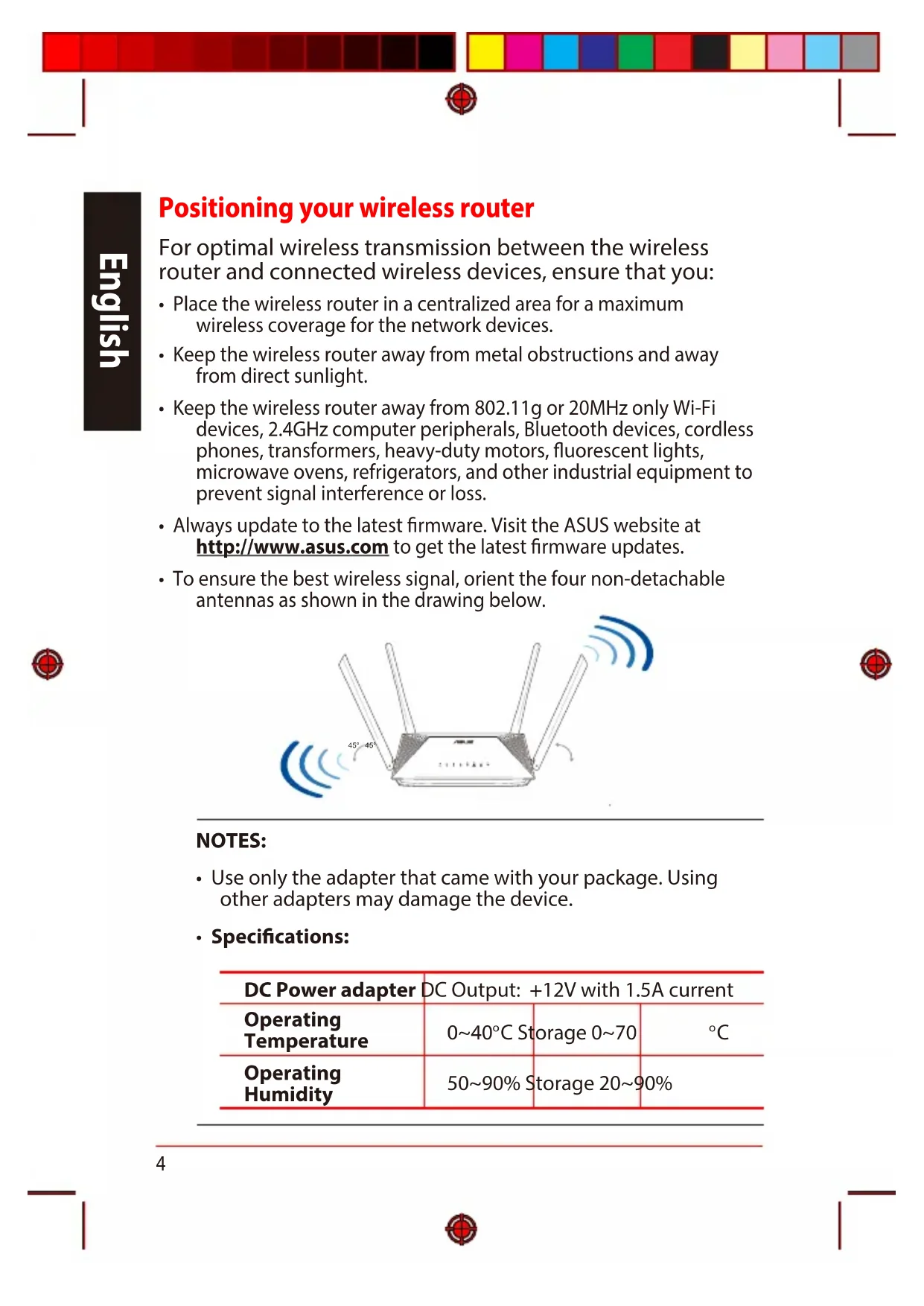 English Positioning your wireless router Positioning your wireless router For optimal wireless transmission between the wireless router and connected wireless devices, ensure that you: