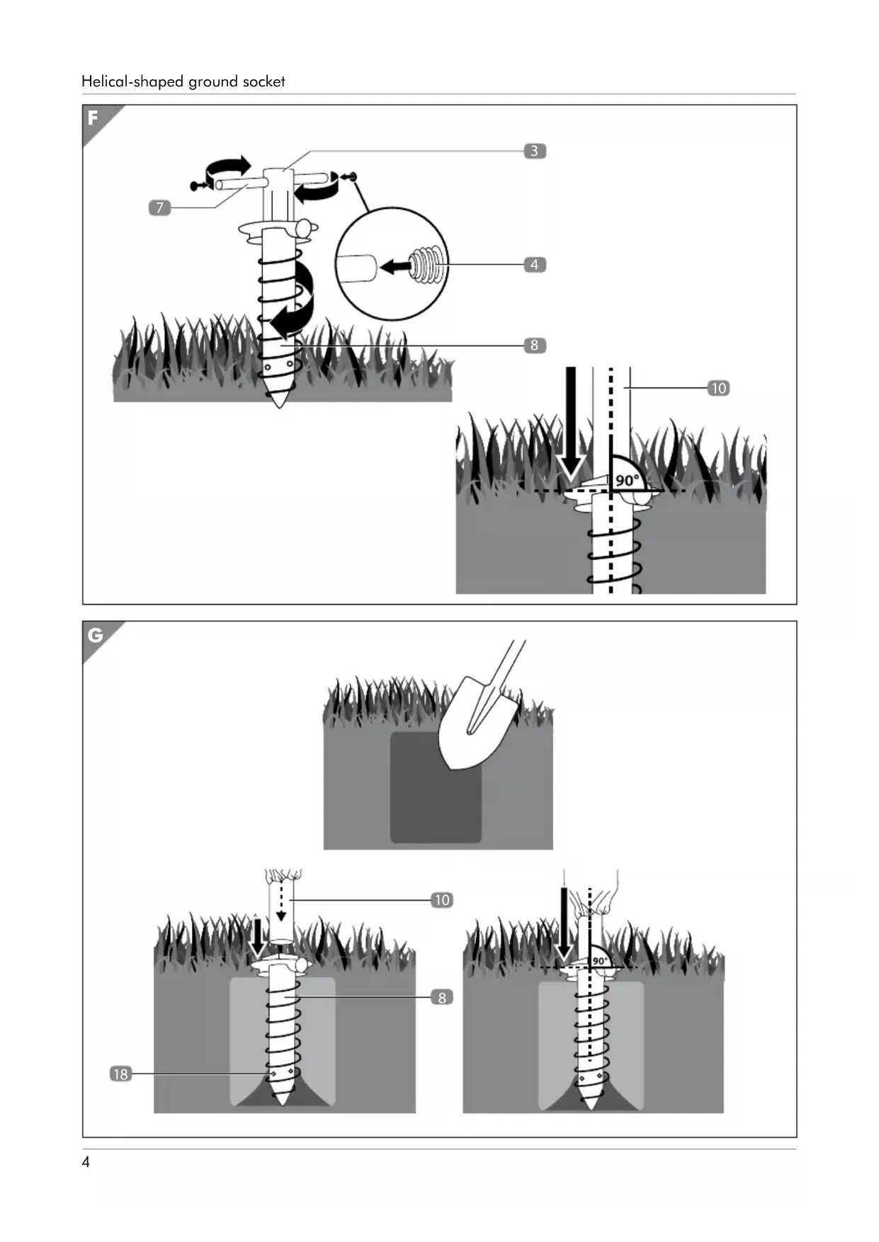 until it engages (see fig. E). Screw-in the ground socket The ground socket can be screwed into the ground (ground level) using the included screw-in tool