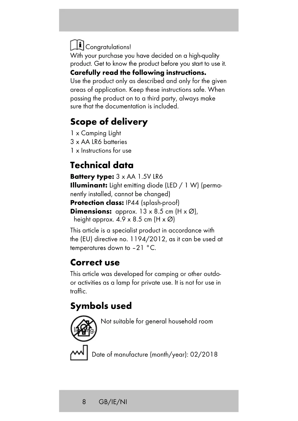 Download the instructions for your Lighting in PDF format for free! Find your manual IAN 297011 - CRIVIT and take your electronic device back in hand. On this page are published all the documents necessary for the use of your device. IAN 297011 by CRIVIT.