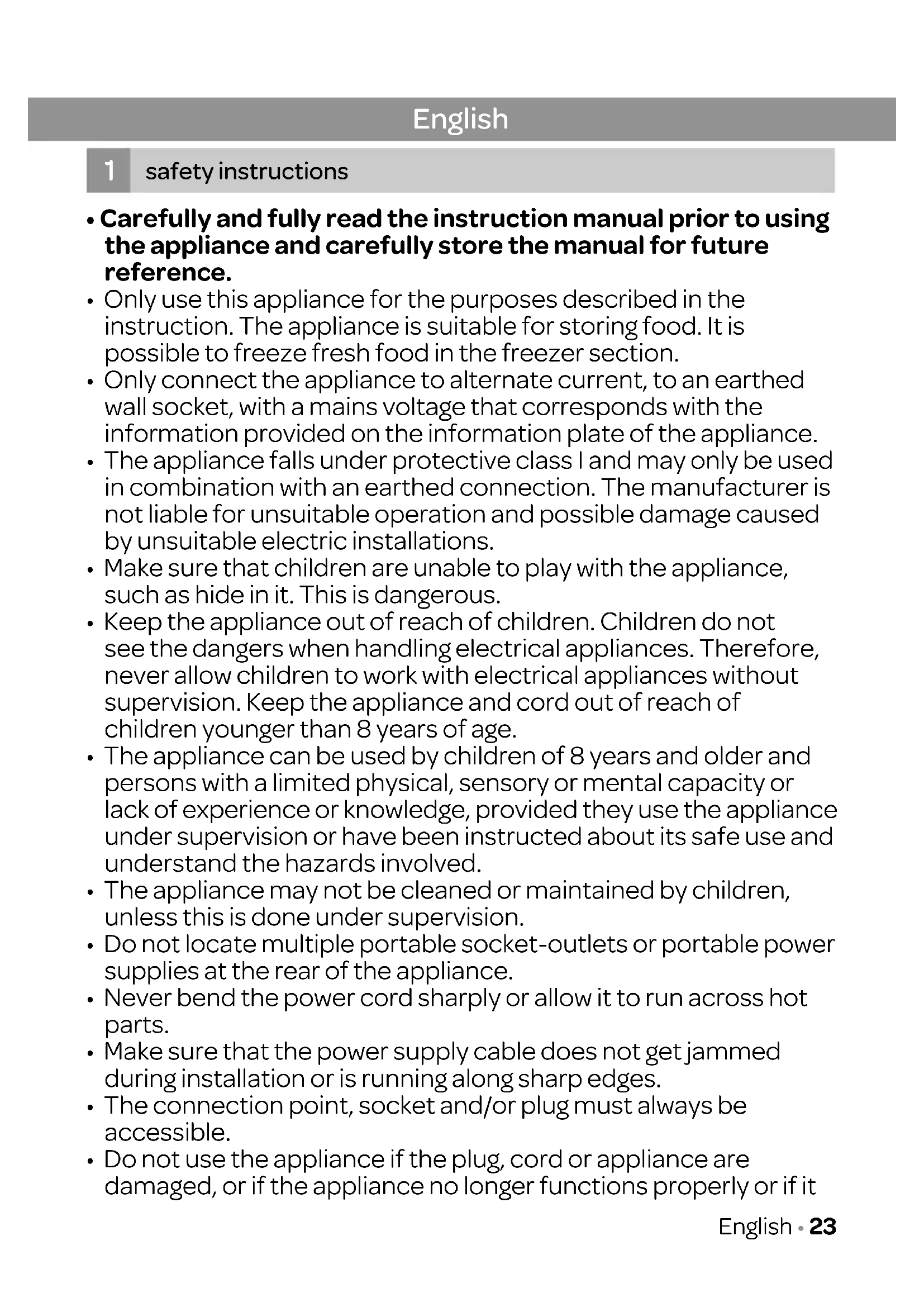 - Make sure that children are unable to play with the appliance, such as hide in it. This is dangerous.