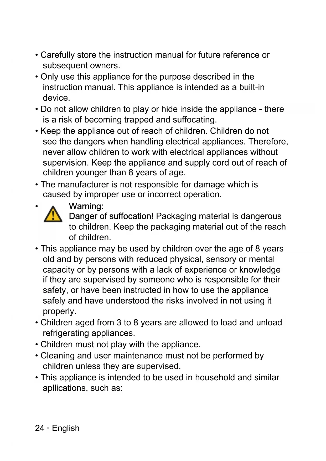 - Children aged from 3 to 8 years are allowed to load and unload refrigerating appliances.