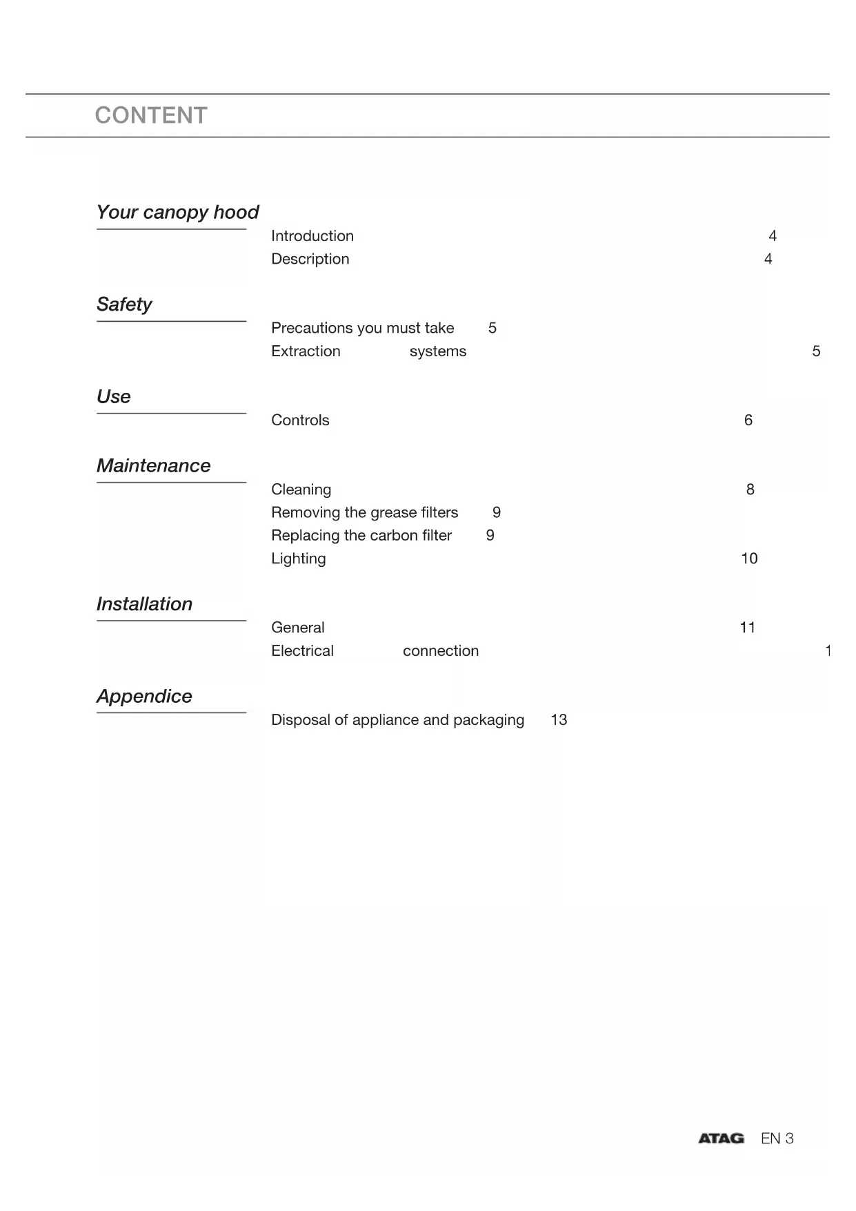 - A carbon filter functions optimally at a lower motor speed. For this reason, avoid the boost function. Dispose of the old carbon filter properly, with non-recyclable waste. Lighting This hood is fitted with a light system. This light system has to be replaced by an authorized technician. Do not attempt to replace it by yourself. The lamp in this household appliance is only suitable for illumination of this appliance. The lamp is not suitable for household room illumination.EN 11 General This appliance should be connected to the power supply by a recognized fitter who is familiar with, and works according to the correct safety regulations. This appliance meets the European requirements. Important that you know:
