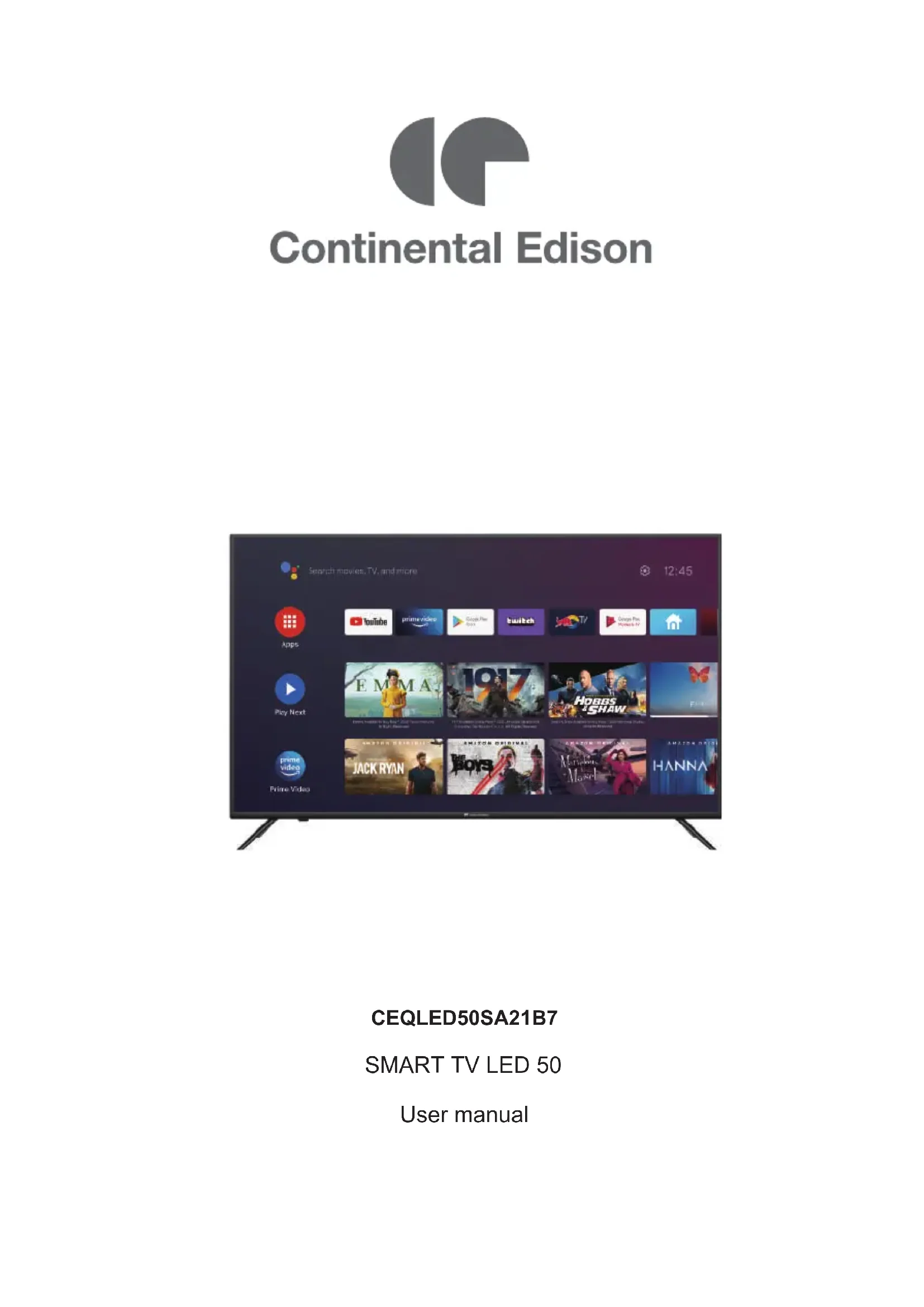 CEQLED50SA21B7 - TV CONTINENTAL EDISON - Free user manual and instructions