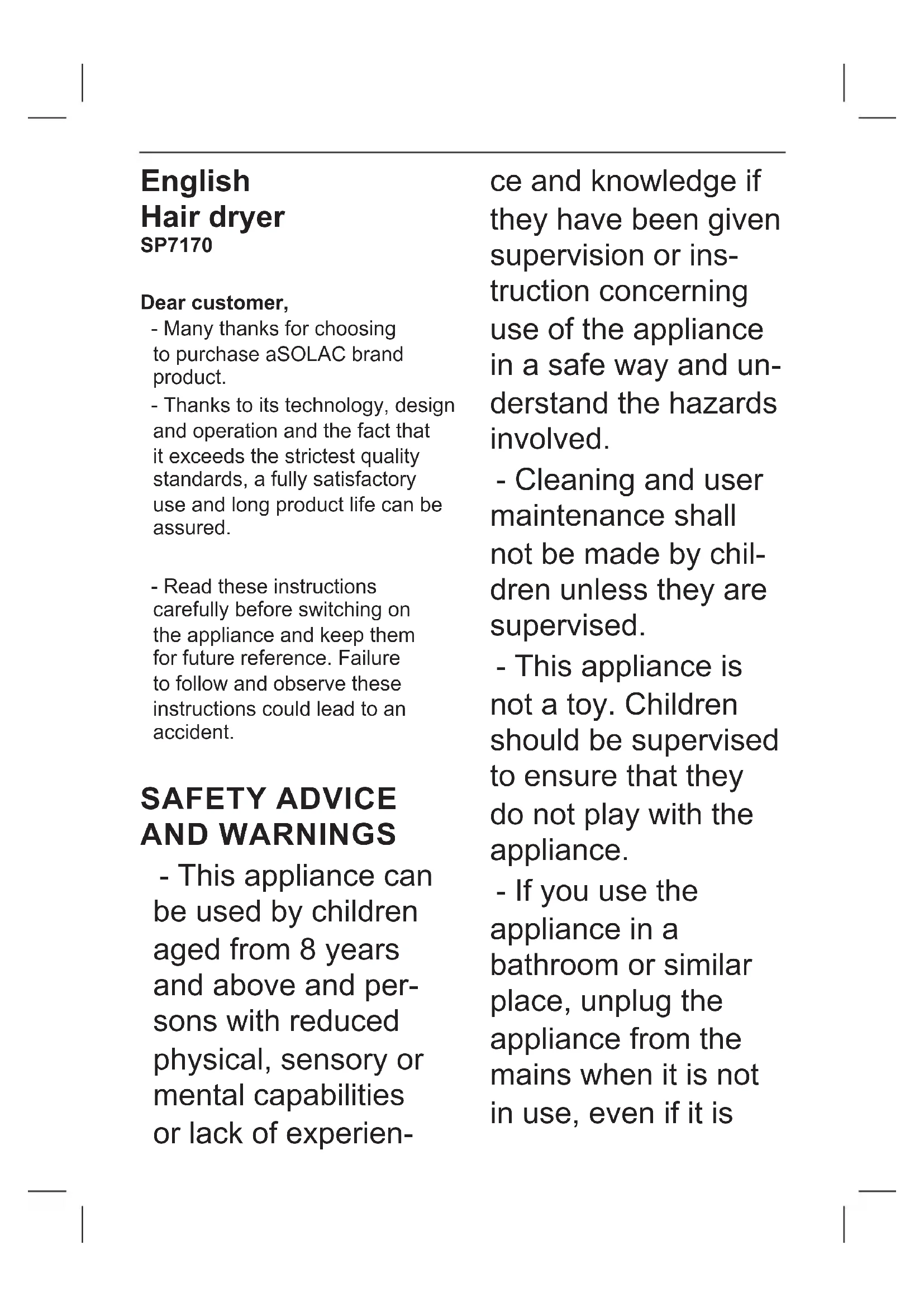 Expert 2600 Tourmaline SP7170 - Hair dryer SOLAC - Free user manual and instructions