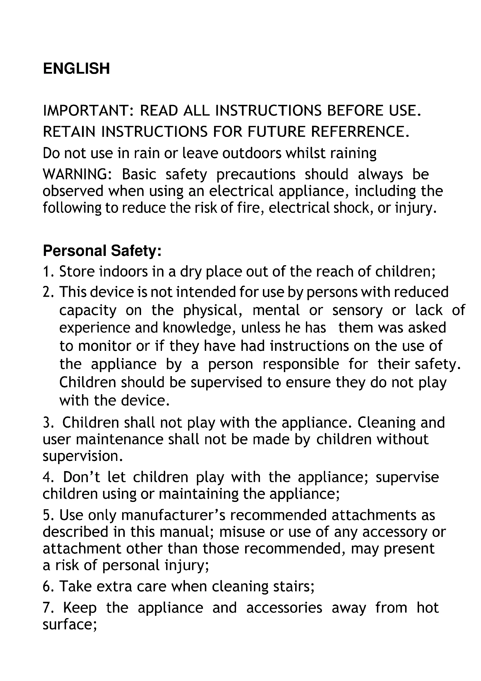 This appliance has been designed for domestic dry vacuum cleaning only;