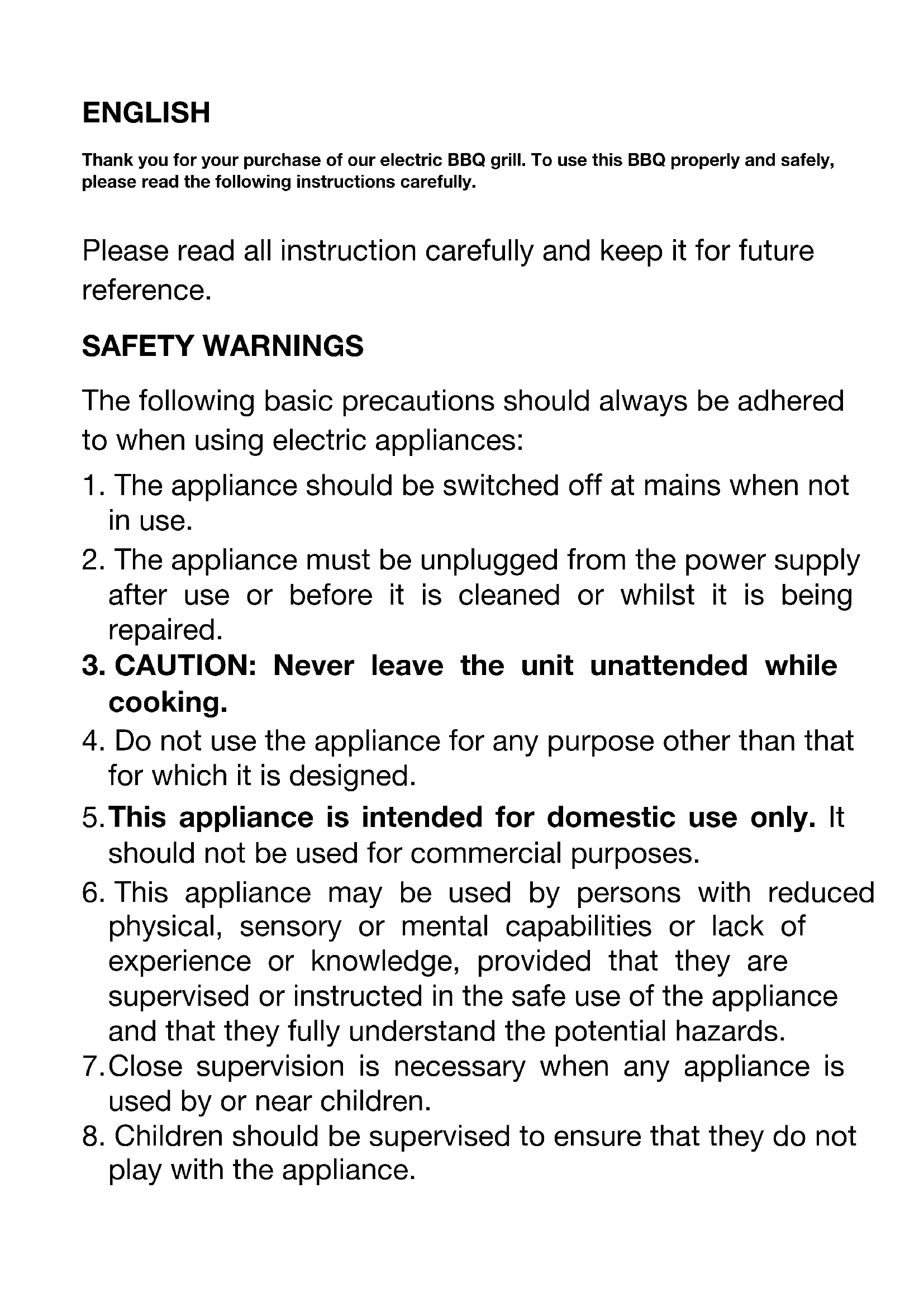 Raclette machine Appareil à raclette Raclette grill Raclette apparaat Unidad a raclette Macchina per raclette Maszyna do raclette rp418ENGLISH Thank you for your purchase of our electric BBQ grill. To use this BBQ properly and safely, please read the following instructions carefully. Please read all instruction carefully and keep it for future reference. SAFETY WARNINGS The following basic precautions should always be adhered to when using electric appliances: