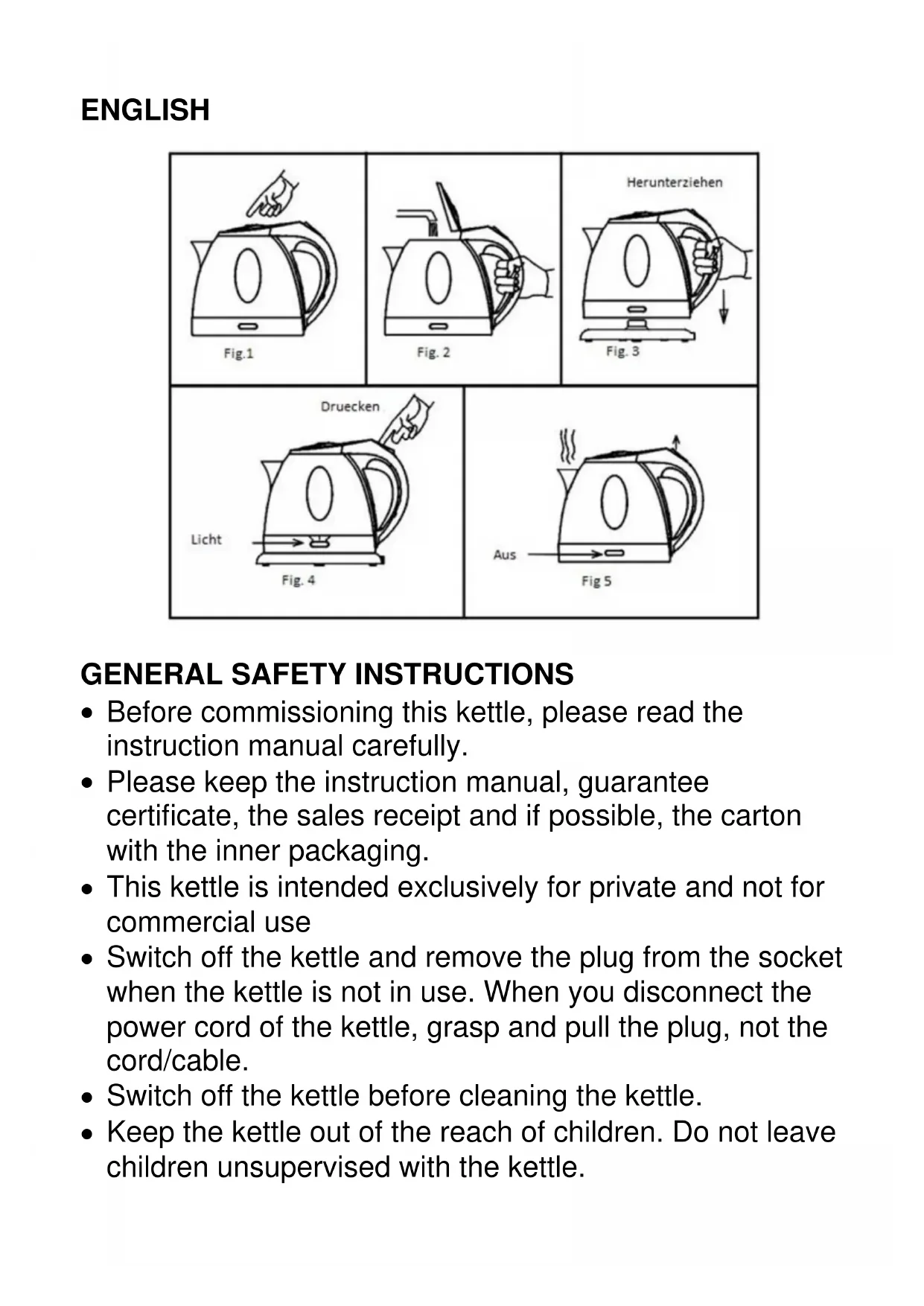 This kettle is intended exclusively for private and not for commercial use