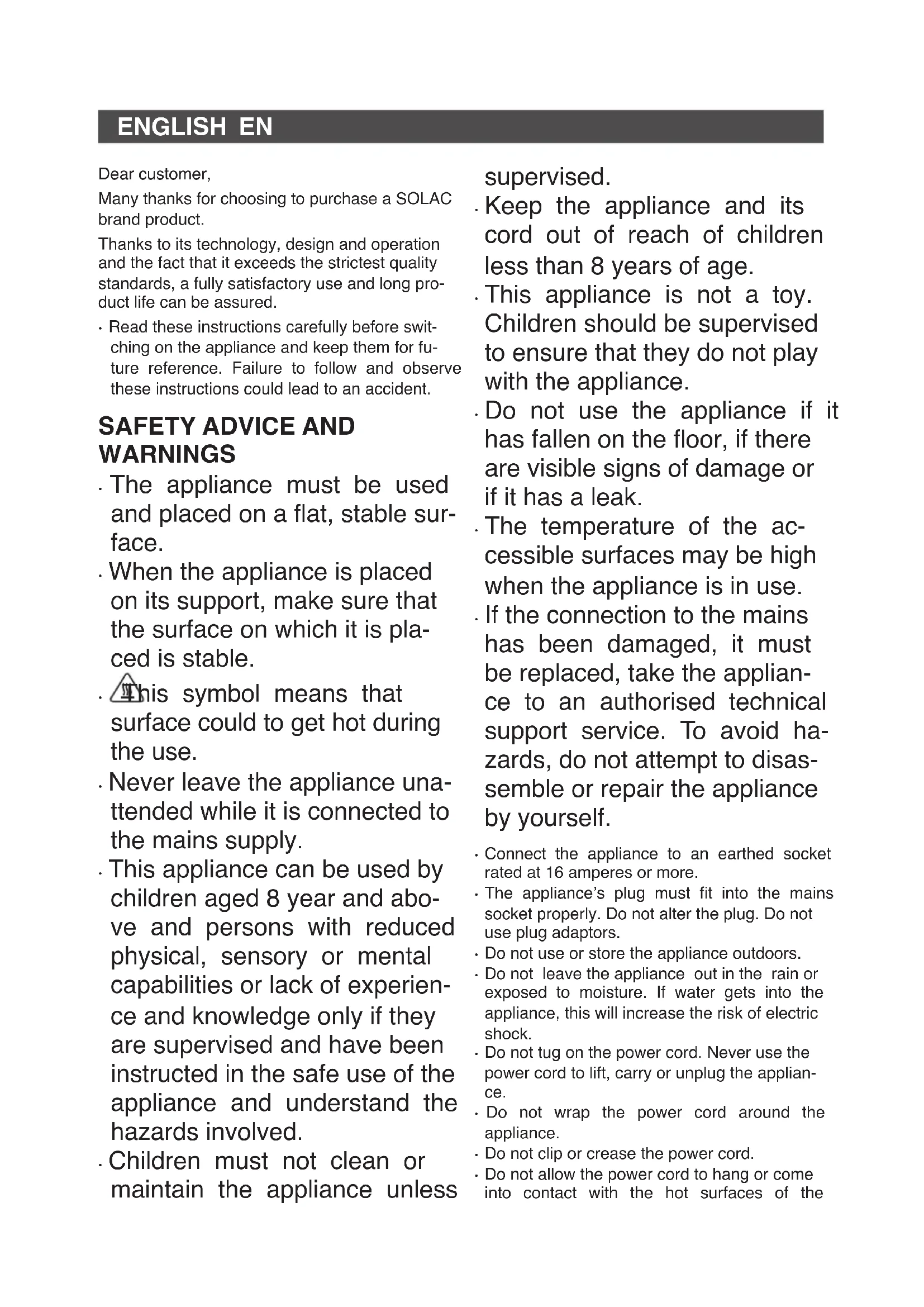 MOD. CVG9511 / 9512 / 9510 Solac is a registered Trade Mark