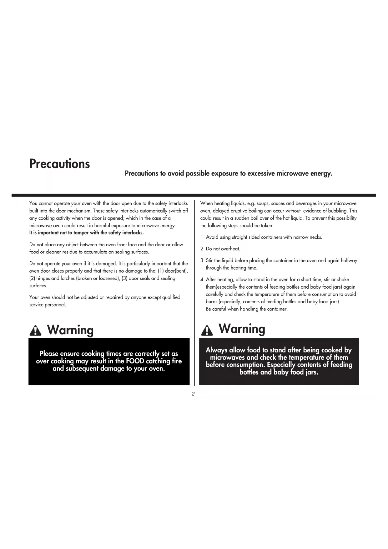 interlocks built into the door mechanism. It is important not to tamper with the safety interlocks. It could result in harmful exposure to excessive microwave energy. (Safety interlocks automatically switch off any cooking activity when the door is opened.)