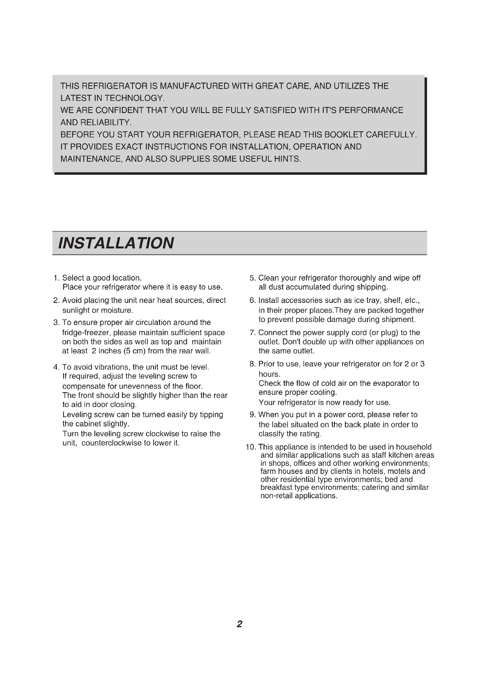 fridge-freezer, please maintain sufficient space on both the sides as well as top and maintain at least 2 inches (5 cm) from the rear wall.