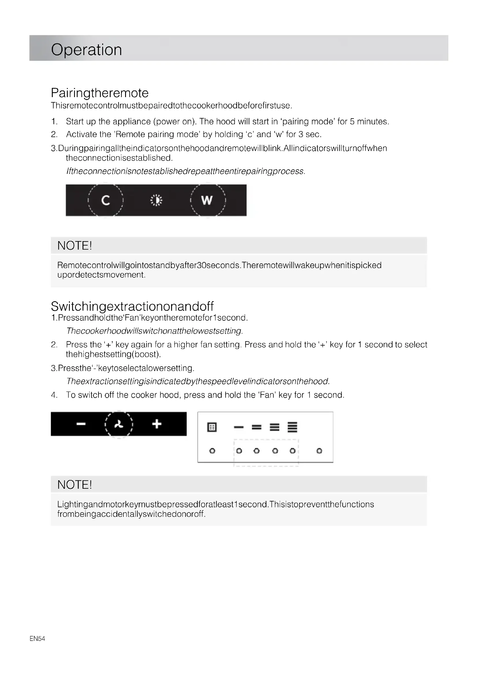 EN 53 UsePairing the remote This remote control must be paired to the cooker hood before first use.