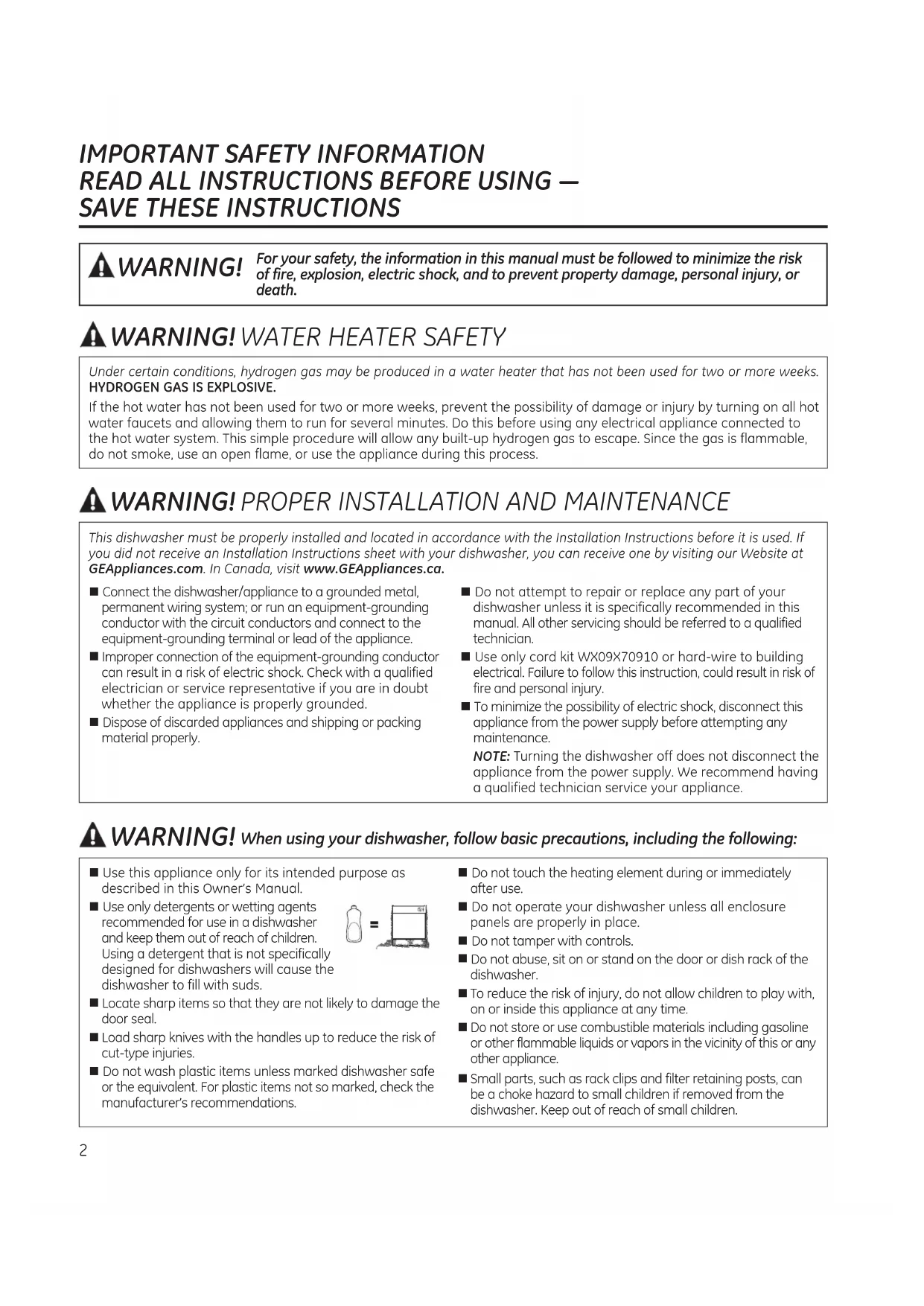 - Dishwashers Owner’s Manual 49-55098 08-15 GE Safety Instructions p. 2