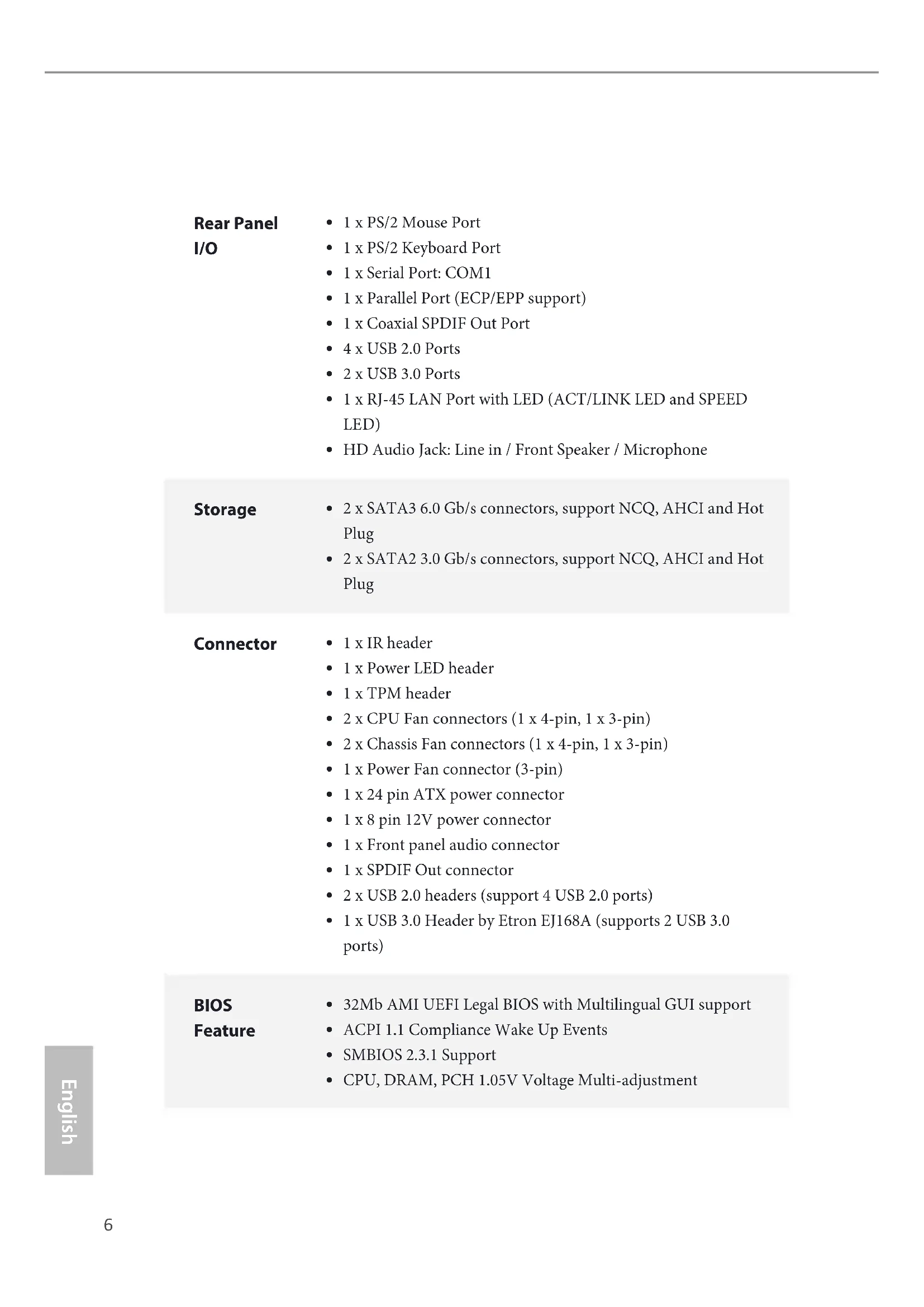 Supports PXE6 English Rear Panel I/O