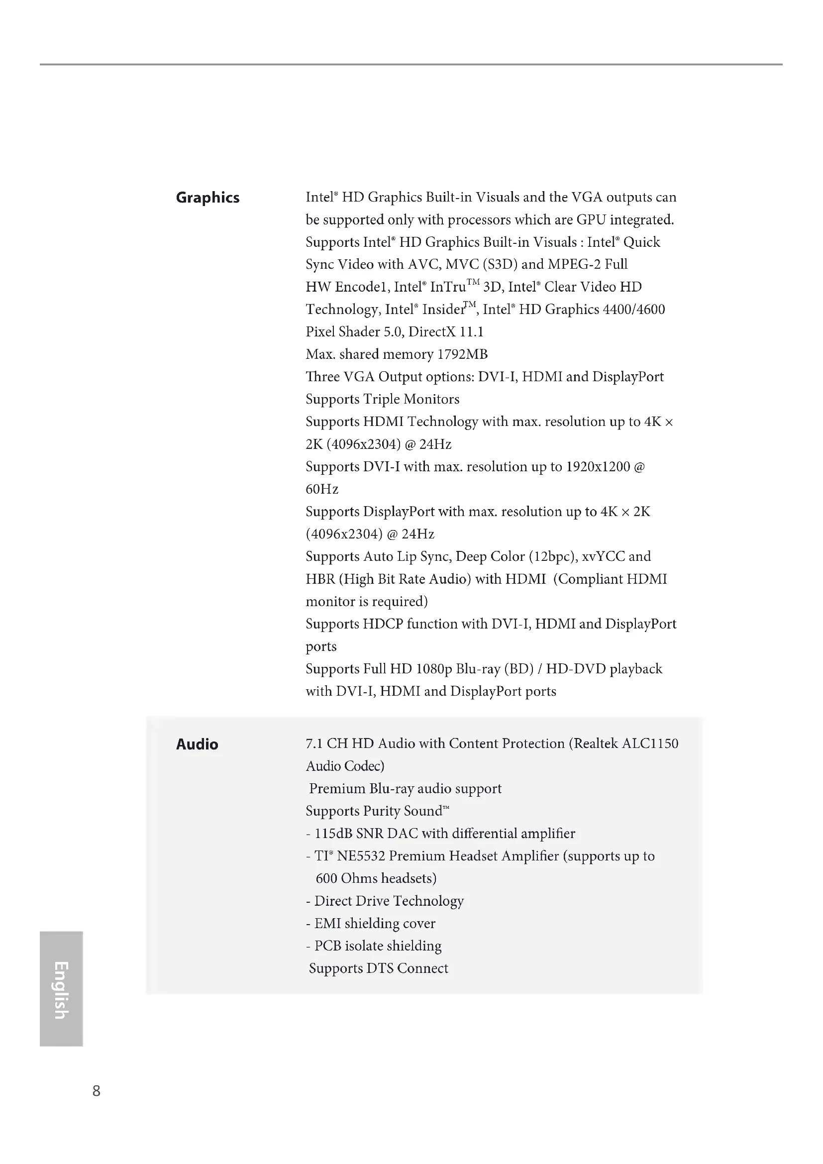 Supports Intel® HD Graphics Built-in Visuals : Intel® Quick Sync Video with AVC, MVC (S3D) and MPEG-2 Full HW Encode1, Intel® InTru