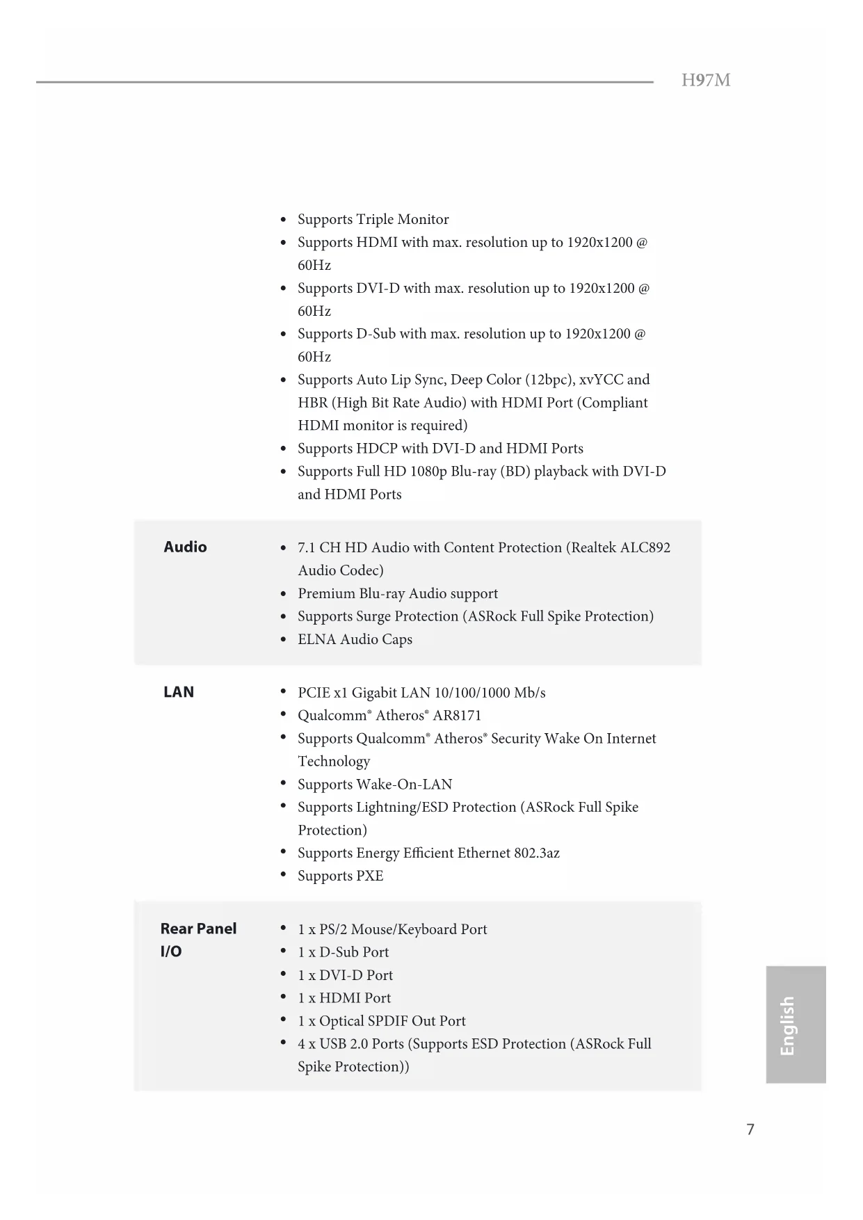 4 x USB 2.0 Ports (Supports ESD Protection (ASRock Full Spike Protection))8 English