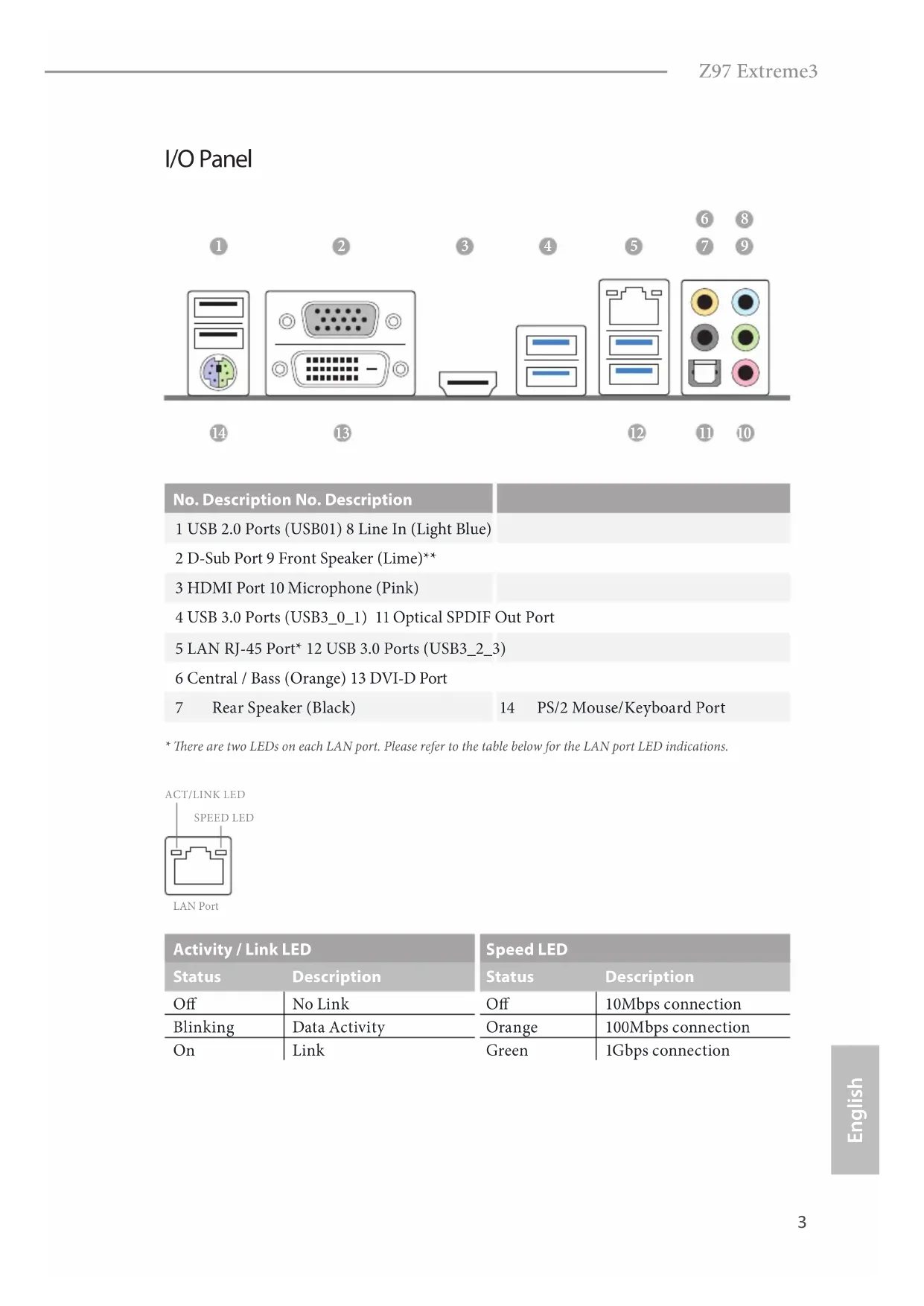 e Lithium battery adopted on this motherboard contains Perchlorate, a toxic substance controlled in Perchlorate Best Management Practices (BMP) regulations passed by the California Legislature. When you discard the Lithium battery in California, USA, please follow the related regulations in advance. “Perchlorate Material-special handling may apply, see www.dtsc.ca.gov/hazardouswaste/ perchlorate” ASRock Website: http://www.asrock.come terms HDMI™ and HDMI High-Denition Multimedia Interface, and the HDMI logo are trademarks or registered trademarks of HDMI Licensing LLC in the United States and other countries.1 Z97 Extreme3 English Motherboard Layout Intel Z97 DDR3_A2 (64 bit, 240-pin module)DDR3_A1 (64 bit, 240-pin module)DDR3_B2 (64 bit, 240-pin module)DDR3_B1 (64 bit, 240-pin module)ATX 12V1Supe r I/O