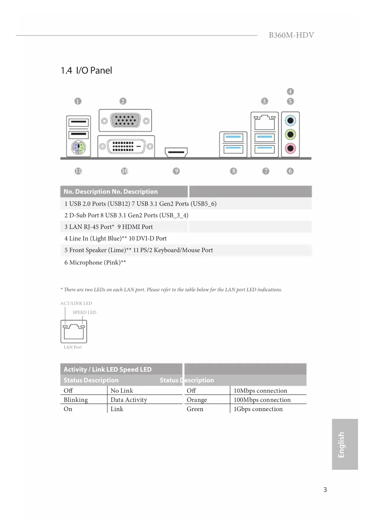 HD Audio Jacks: Line in / Front Speaker / MicrophoneEnglish