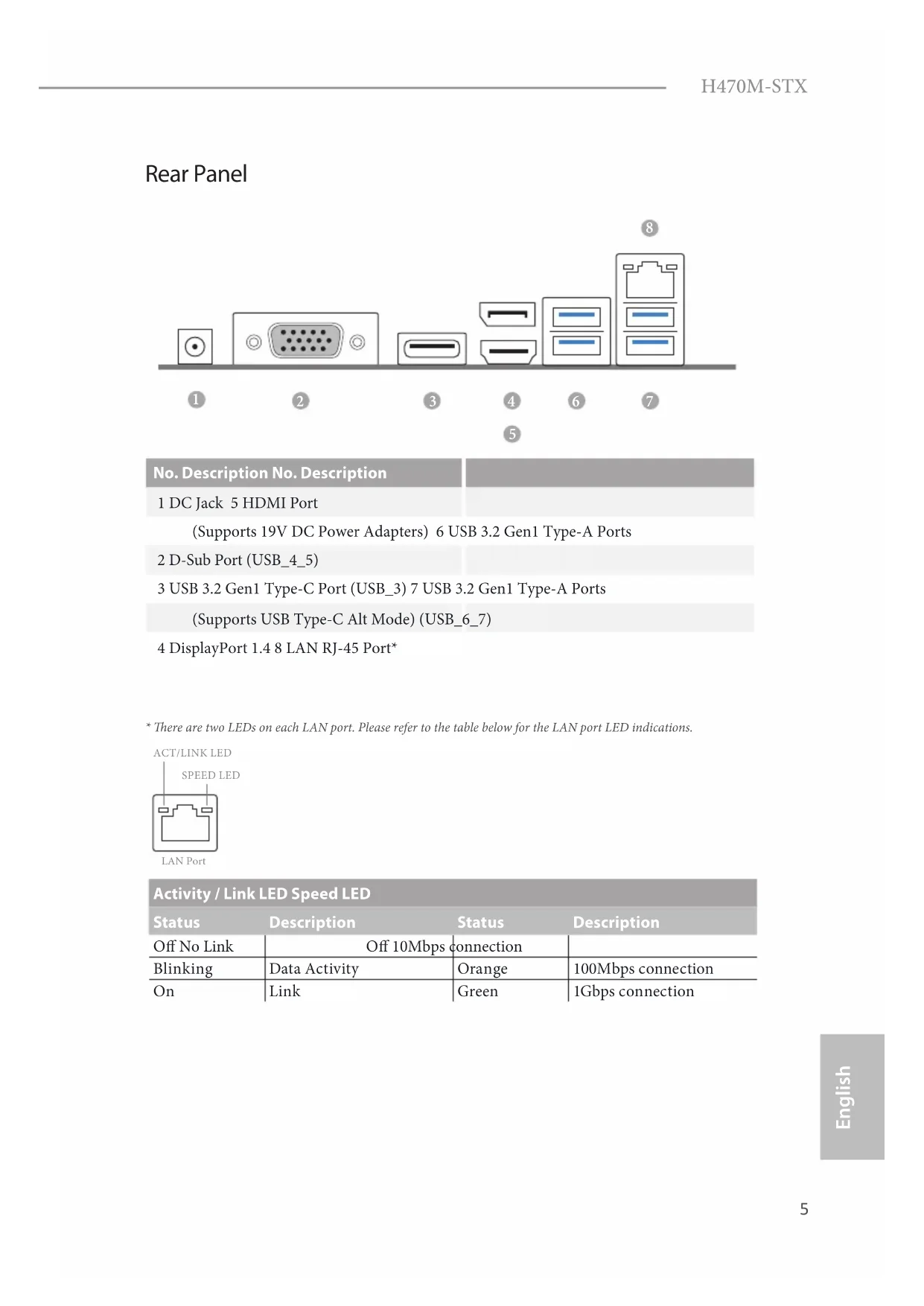 1 x Microphone Input Jack8 9 English H470M-STX Rear Panel I/O