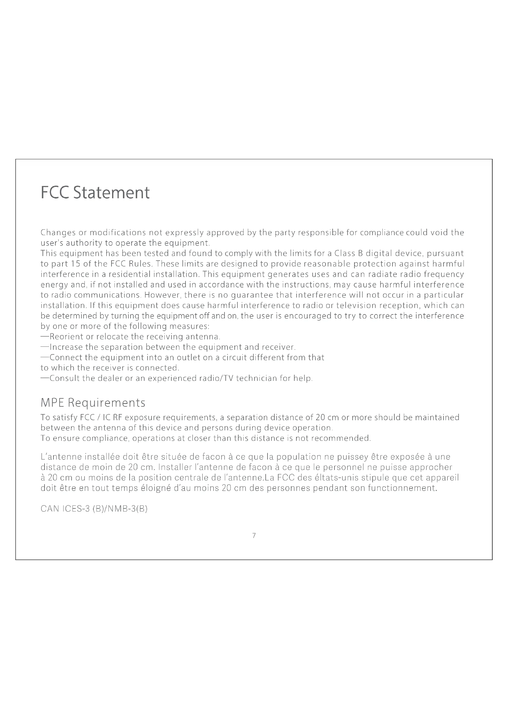 Usage Domestique seulement Laser Safety Class I Laser Product, complies with FDA 21 CFR 1040.10 and 1040.11, except for deviations pursuant to Laser Notice. No.50, dated June 24, 2007.FCC Statement