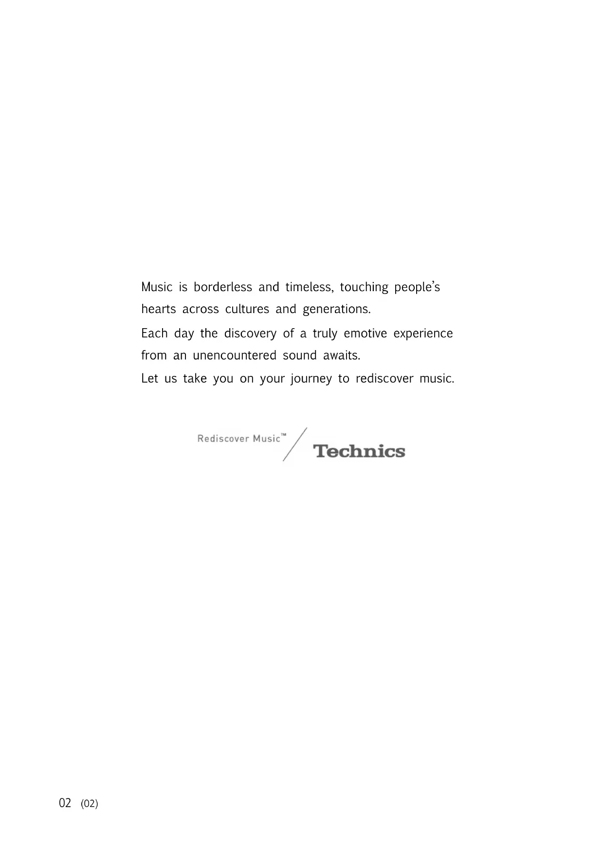 SC-C50 / SC-C30 Wireless Speaker System Drahtloses Lautsprechersystem Système d’enceinte sans fil Sistema Speaker Wireless Draadloos luidsprekersysteem Sistema de altavoces Trådlöst högtalarsystem Trådløst højttalersystem Langaton kaiutinjärjestelmä Basic Operating Instructions Kurz-Bedienungsanleitung Manuel d’utilisation Fonctions de base Istruzioni per l’uso di base Beknopte gebruiksaanwijzing Instrucciones básicas Grundläggande bruksan visning Vejledning i den grundlæggende betjening Perusasetukset Käyttöohjeet (Image: SC-C50)02 (02) Music is borderless and timeless, touching people’s hearts across cultures and generations. Each day the discovery of a truly emotive experience from an unencountered sound awaits. Let us take you on your journey to rediscover music.03 (03) Delivering the Ultimate Emotive Musical Experience to All At Technics we understand that the listening experience is not purely about technology but the magical and emotional relationship between people and music. We want people to experience music as it was originally intended and enable them to feel the emotional impact that enthuses and delights them. Through delivering this experience we want to support the development and enjoyment of the world’s many musical cultures. This is our philosophy. With a combination of our love of music and the vast high- end audio experience of the Technics team, we stand committed to building a brand that provides the ultimate emotive musical experience by music lovers, for music lovers. Director Michiko Ogawa04 (04) For the United Kingdom and Ireland customer Sales and Support Information Customer Communications Centre