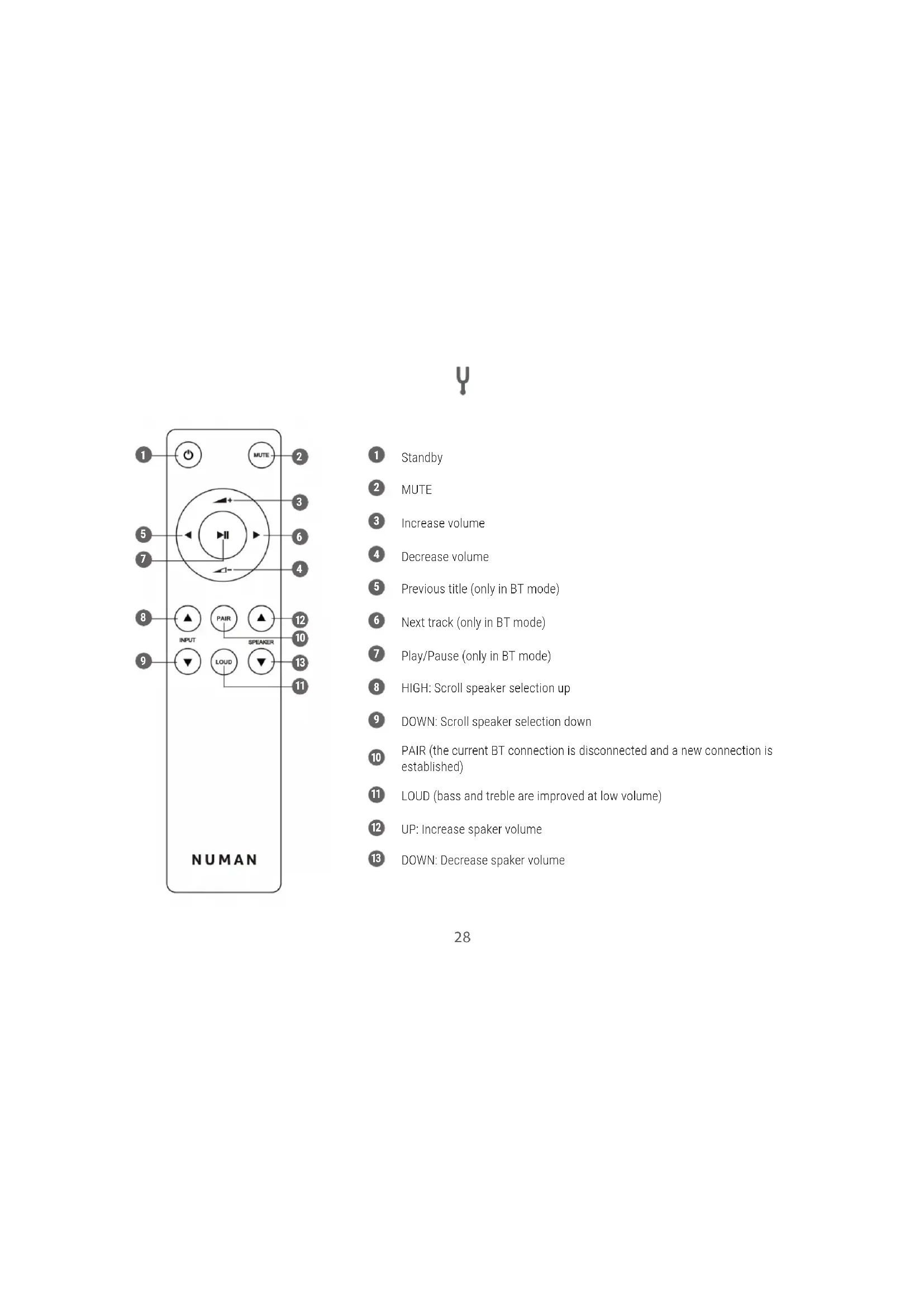 Play/Pause (only in BT mode)