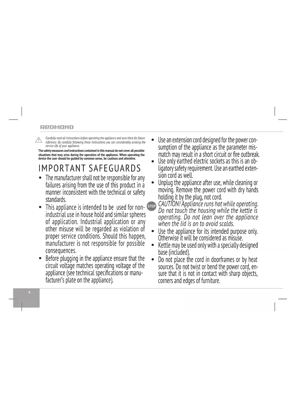 RKM124E - Kettle Redmond - Free user manual and instructions