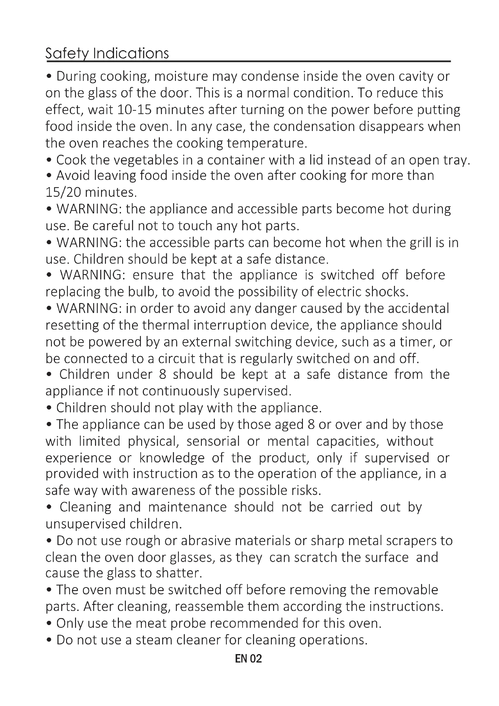 - Avoid leaving food inside the oven after cooking for more than 15/20 minutes.