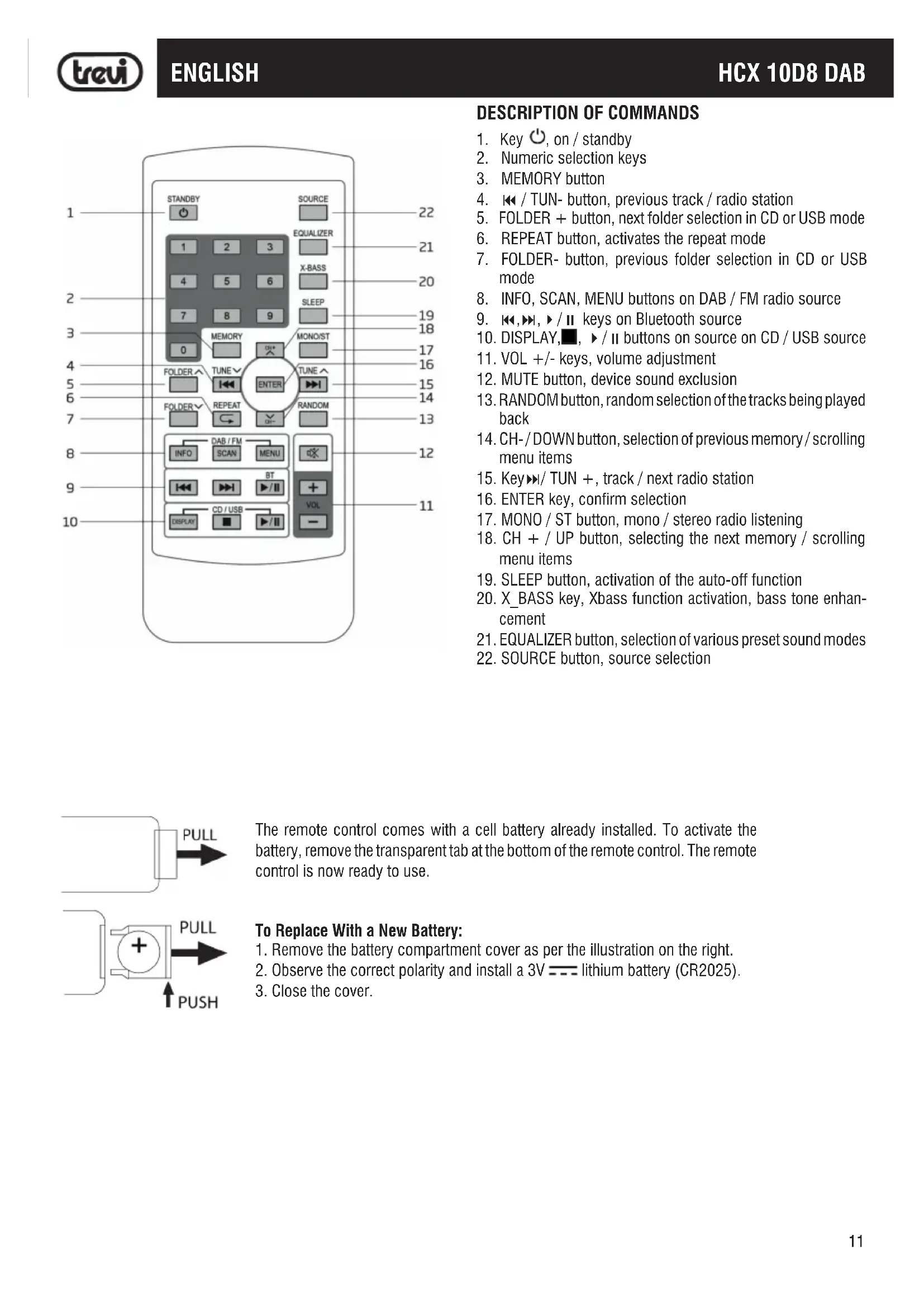 Download the instructions for your Hi-fi system in PDF format for free! Find your manual HCX 10D8 DAB - Trevi and take your electronic device back in hand. On this page are published all the documents necessary for the use of your device. HCX 10D8 DAB by Trevi.