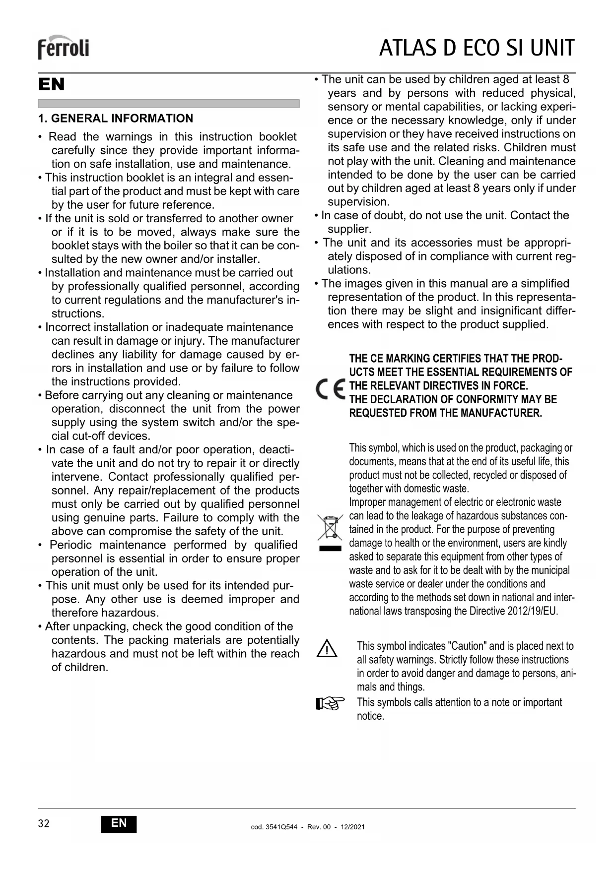 Download the instructions for your Uncategorized in PDF format for free! Find your manual Atlas D Eco Si Unit - FERROLI and take your electronic device back in hand. On this page are published all the documents necessary for the use of your device. Atlas D Eco Si Unit by FERROLI.