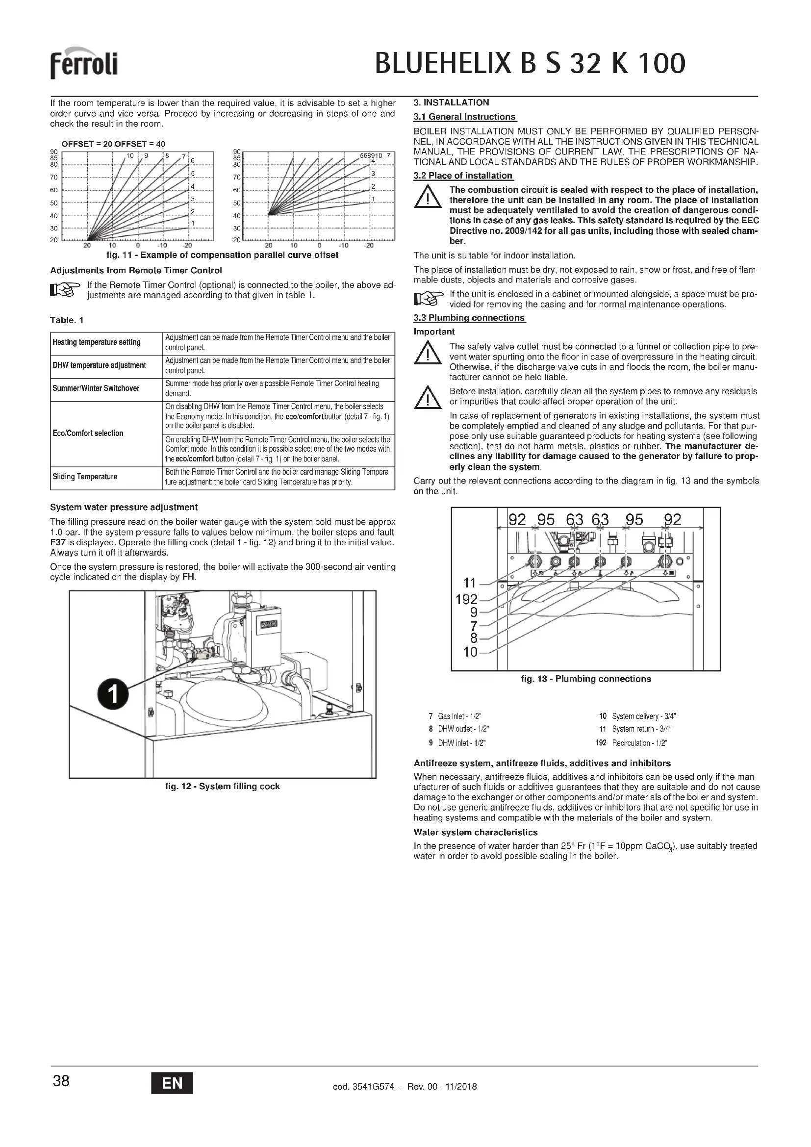 Bluehelix B S 32 K 100 - Central heating boiler FERROLI - Free user manual and instructions