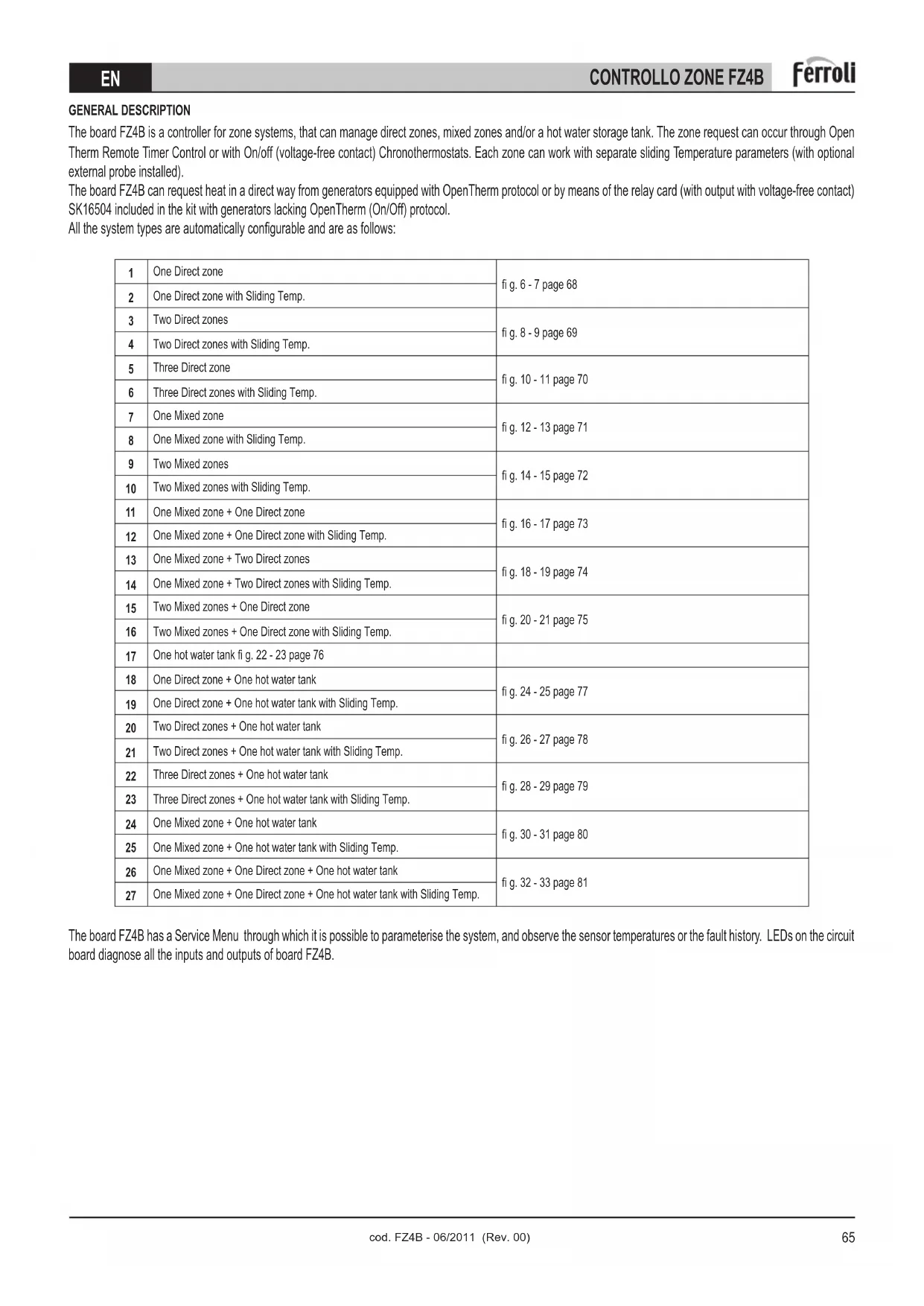 The board FZ4B is a zone controller that can be confi gured in several ways. There are six main confi gurations: