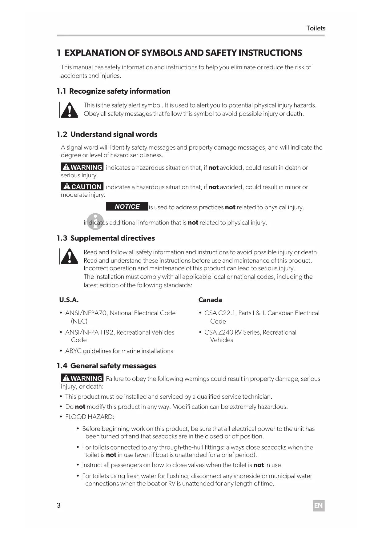 RV installation is available for certain models only. Refer to the toilet installation manual for information on the applicable models. 3 OPERATION