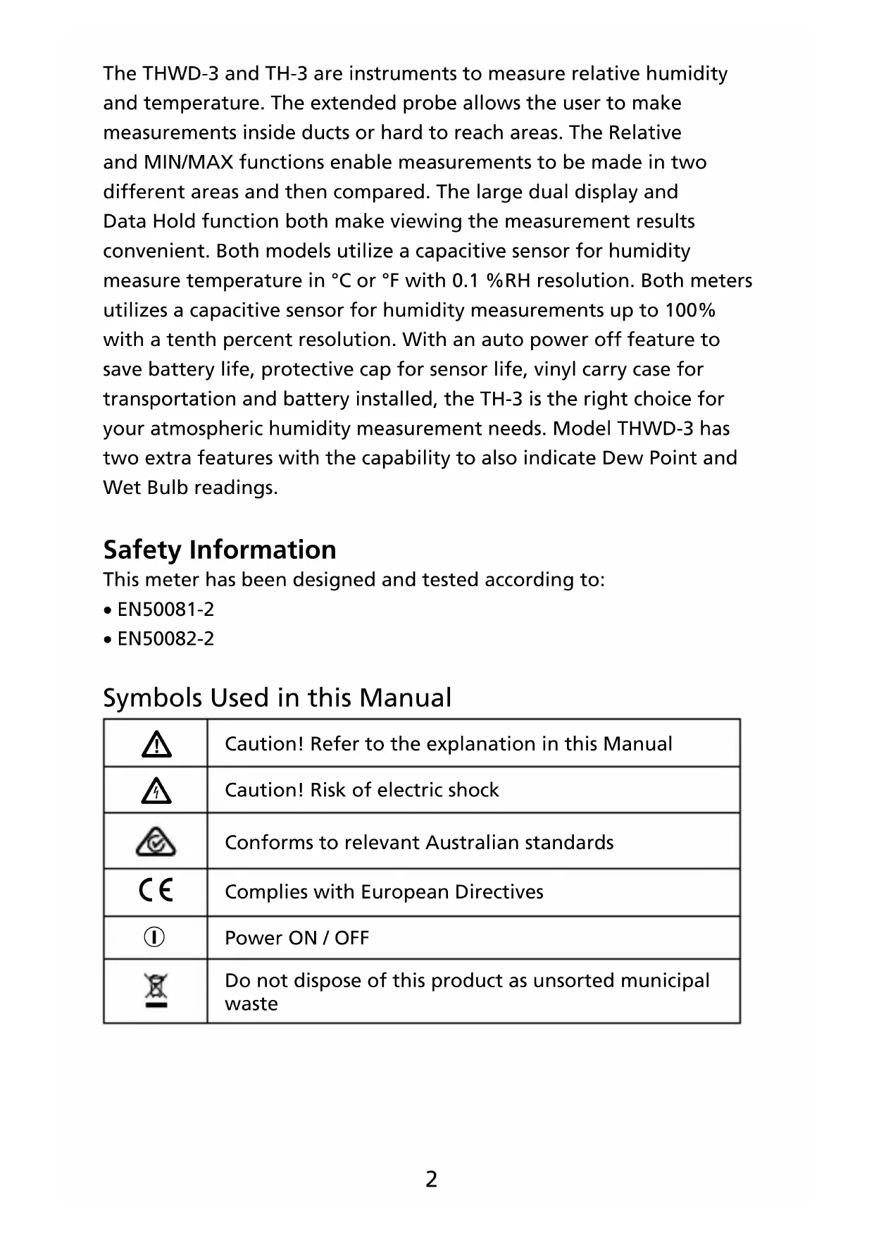 THWD-3 TH-3 Relative Humidity and Temperature Meters User Manual