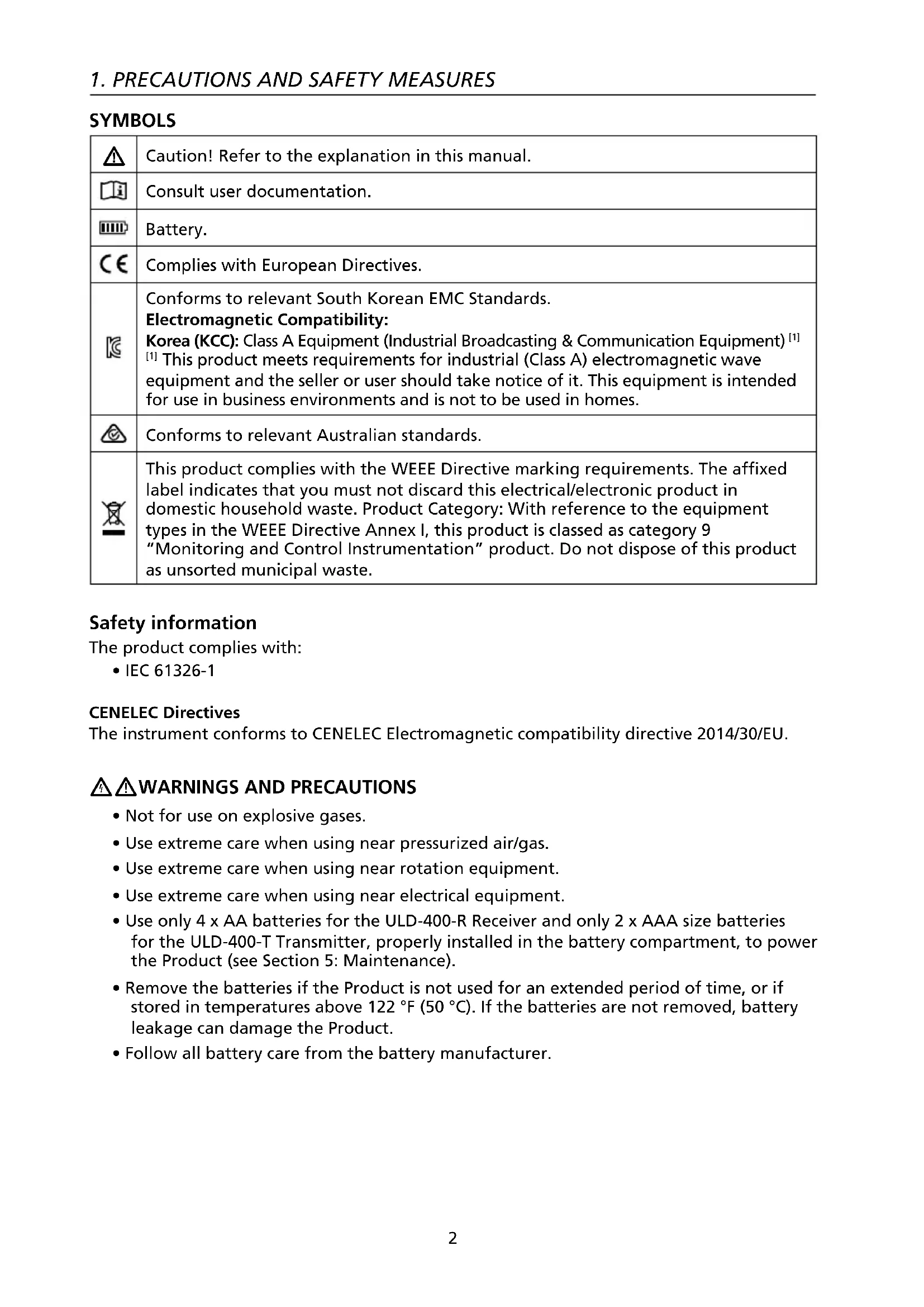 - IEC 61326-1 CENELEC Directives The instrument conforms to CENELEC Electromagnetic compatibility directive 2014/30/EU.