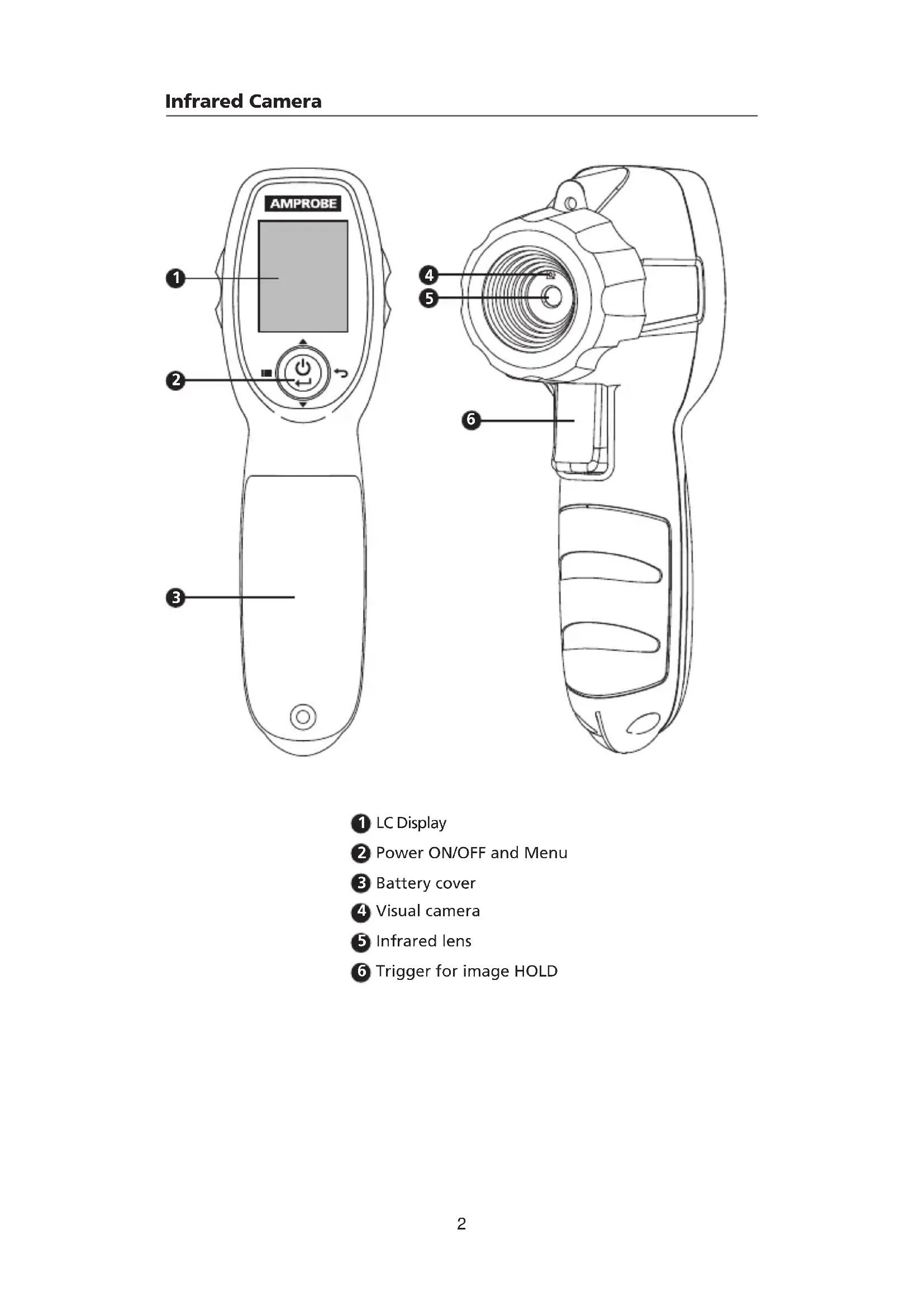 Your shipping carton should include: 1 IRC-110 or IRC-110-CN Infrared Camera 3 1.5 V AA batteries 1 User manual 1 Wrist Strap If any of the items are damaged or missing, return the complete package to the place of purchase for an exchange. Note: Batteries do not come pre-installed. Please refer to the Maintenance and Battery Replacement section for further instruction.