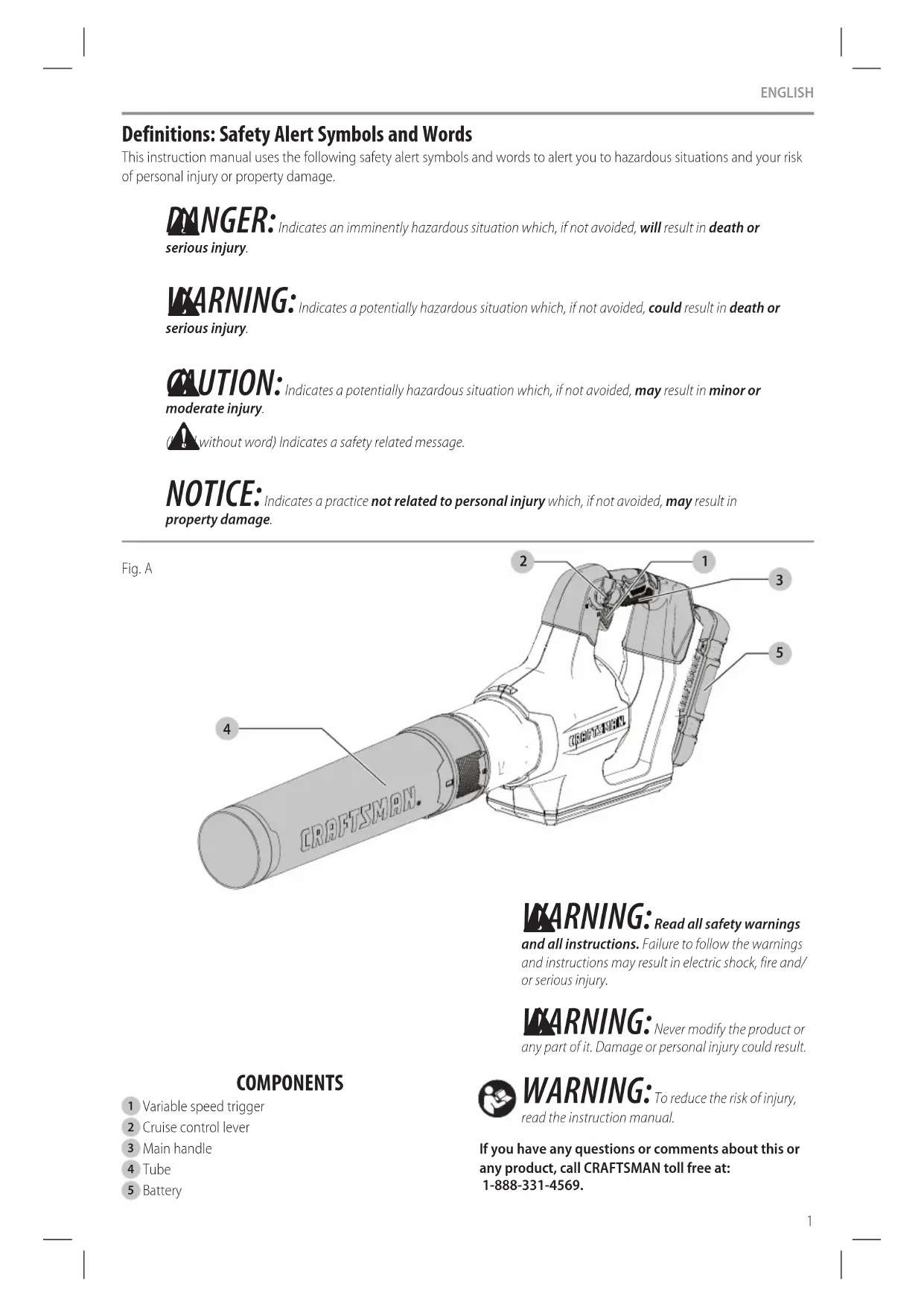 CMCBL760E1 - Blower Craftsman - Free user manual and instructions