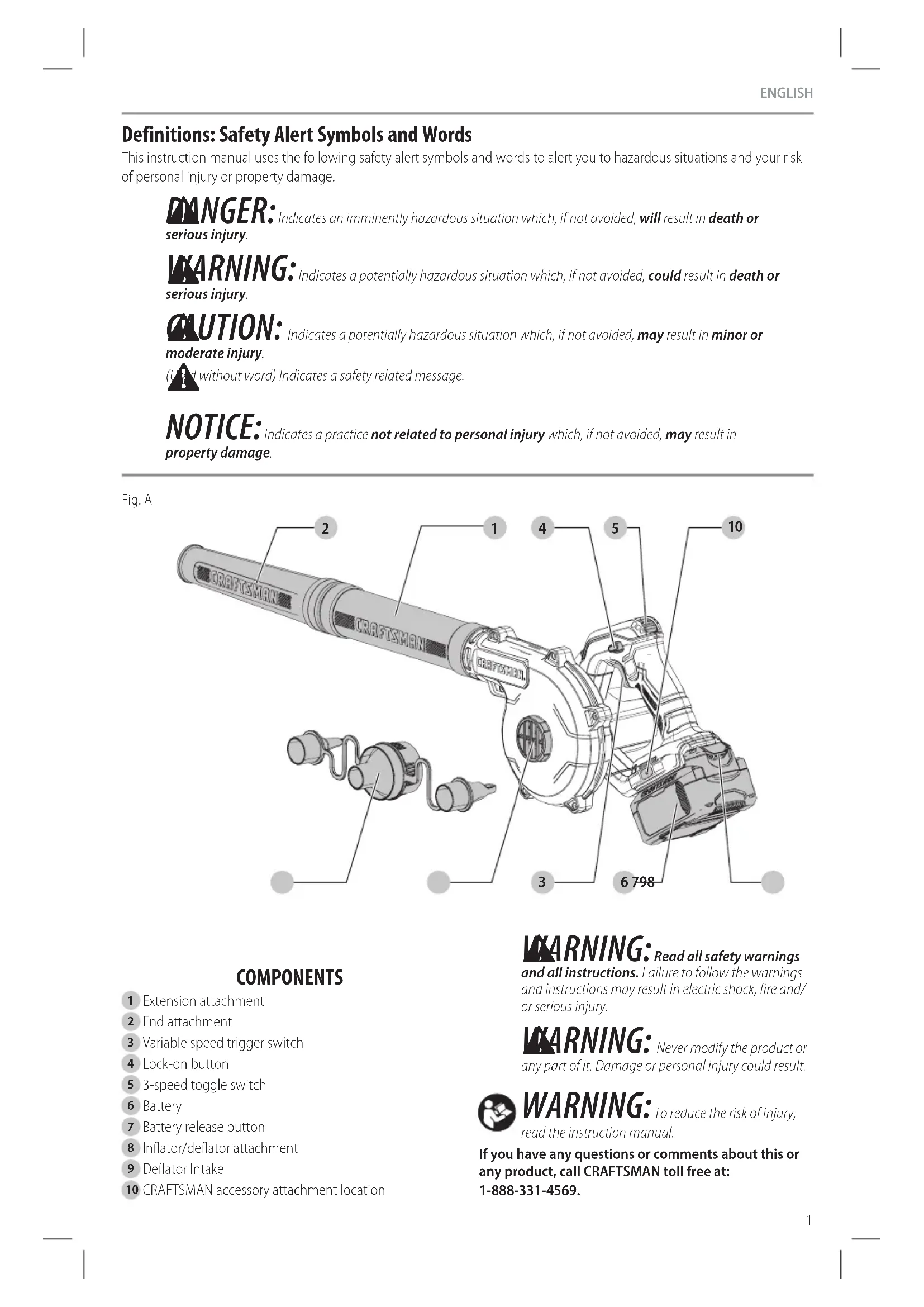 CMCBL0100B - Blower Craftsman - Free user manual and instructions