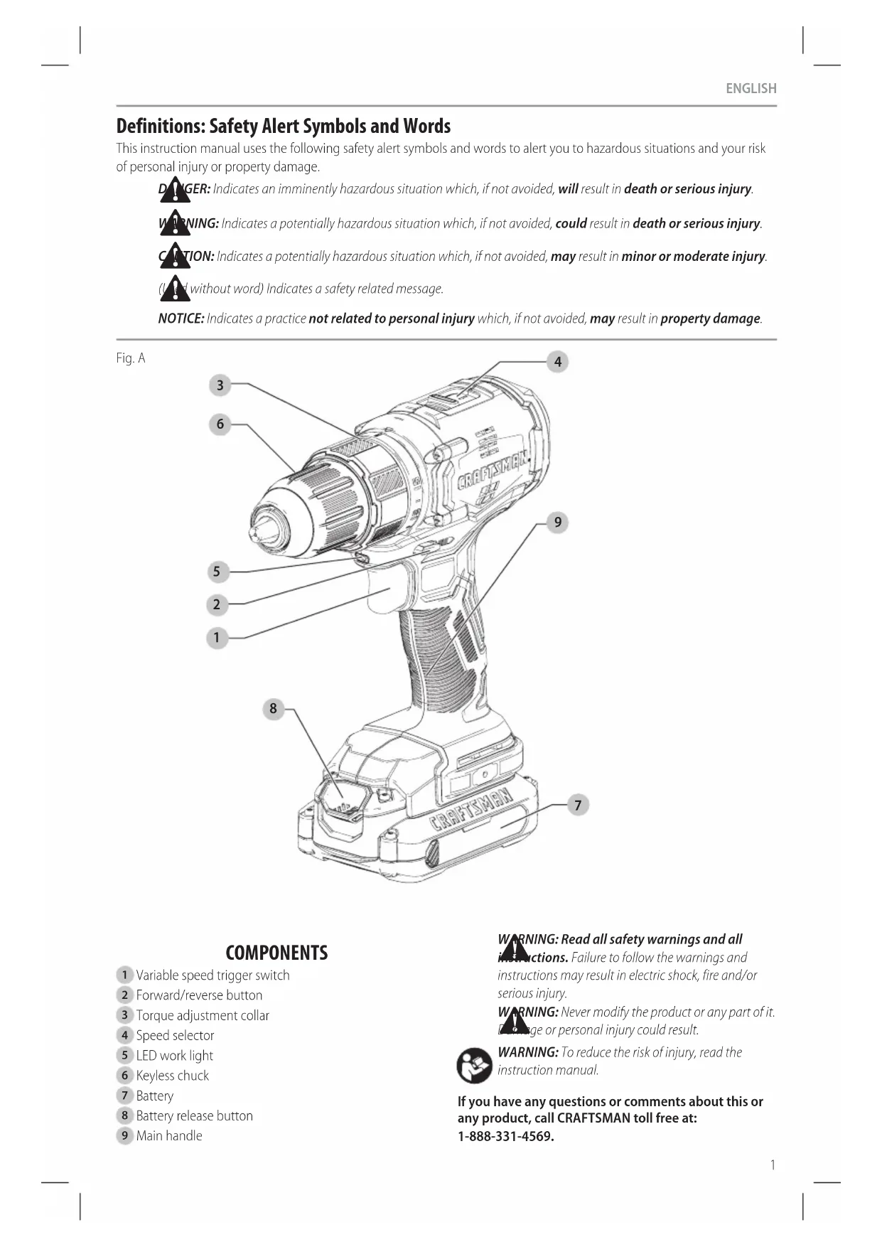 offered by CRAFTSMAN, have not been tested with this product, use of such accessories with this tool could be hazardous. To reduce the risk of injury, only CRAFTSMAN recommended accessories should be used with thisproduct. Recommended accessories for use with your tool are available at extra cost from your local dealer or authorized service center. If you need assistance in locating any accessory, please contact CRAFTSMAN, call 1-888-331-4569. MAINTENANCE