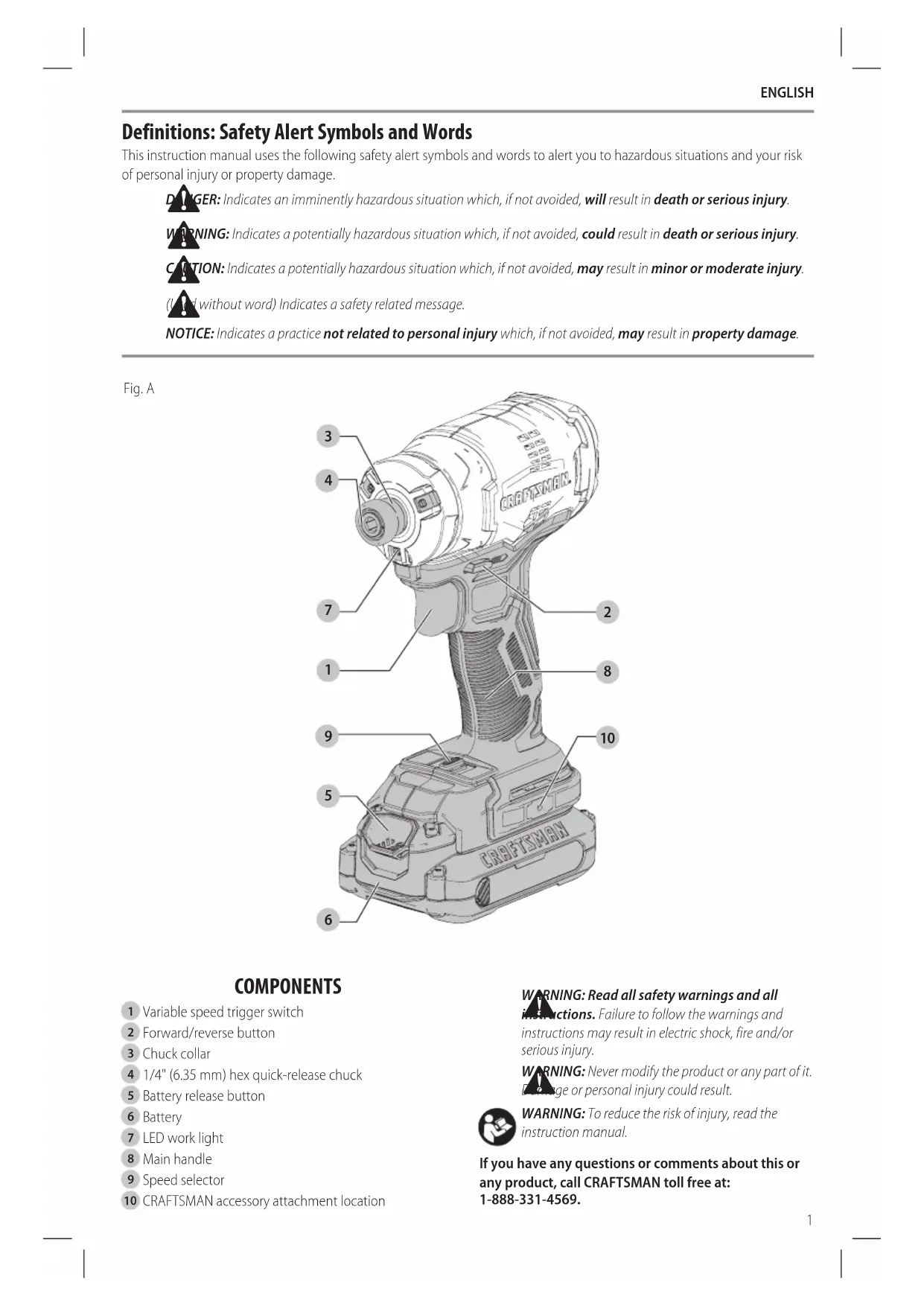 CRAFTSMAN accessory attachment location Fig. A Definitions: Safety Alert Symbols and Words This instruction manual uses the following safety alert symbols and words to alert you to hazardous situations and your risk of personal injury or property damage.
