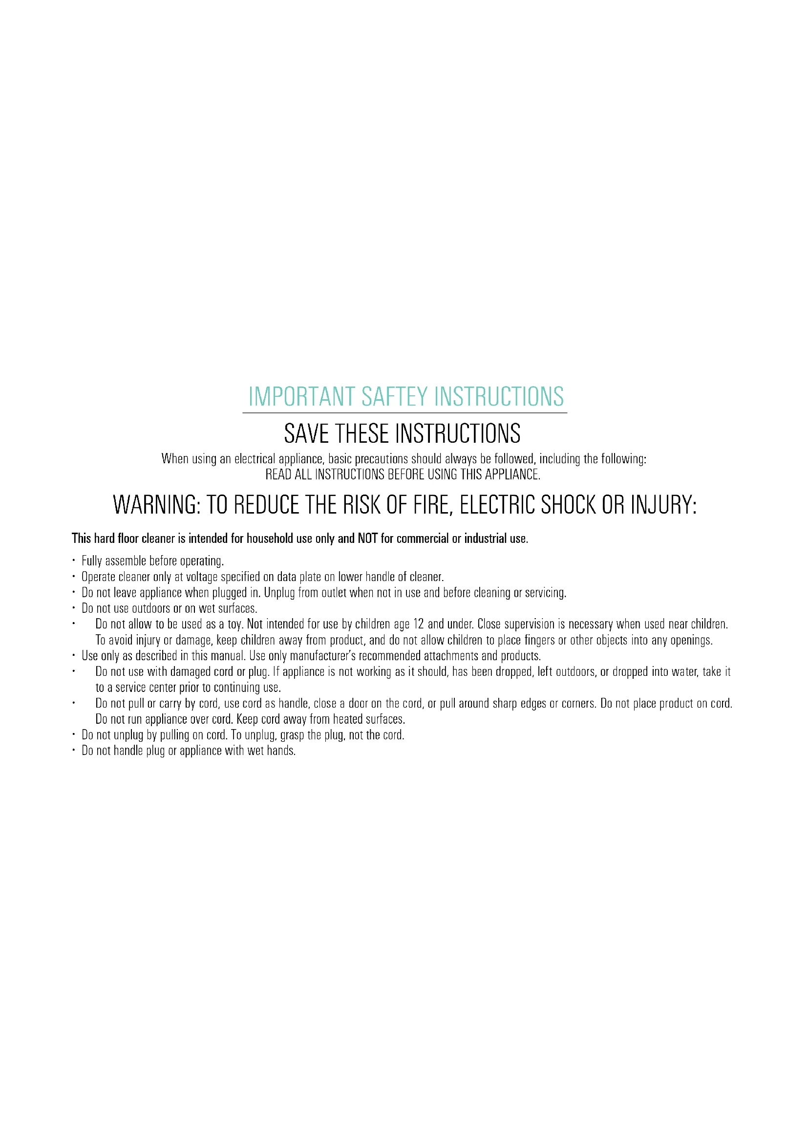 This hard floor cleaner is intended for household use only and NOT for commercial or industrial use.