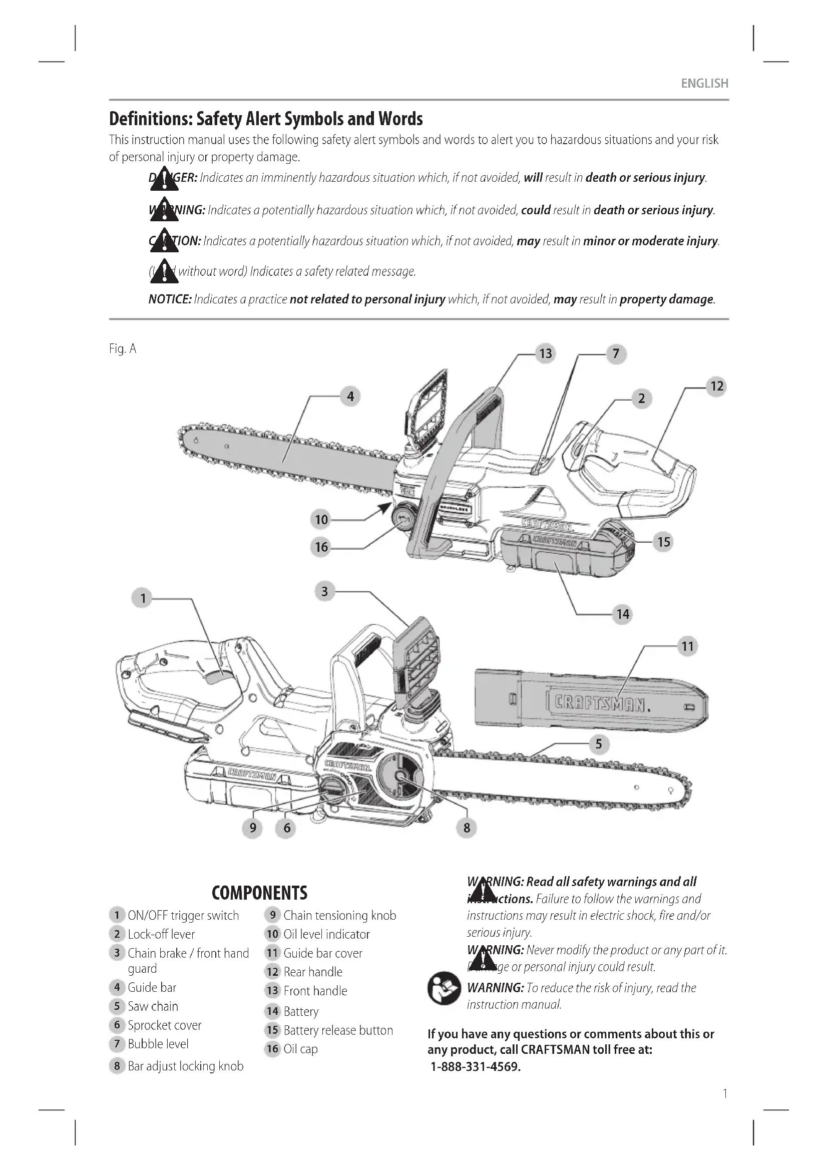 - FOR YOUR SAFETY: Registering your product will allow us to contact you in the unlikely event a safety notification is required under the Federal Consumer SafetyAct. Register online at www.craftsman.com/registration FREE WARNING LABEL REPLACEMENT: If your warning labels become illegible or are missing, call 1-888-331-4569 for a freereplacement. Four Year Limited Warranty CRAFTSMAN will repair or replace, without charge, any defects due to faulty materials or workmanship for four years from the date of purchase. This warranty does not cover part failure due to normal wear or tool abuse. For further detail of warranty coverage and warranty repair information, visit www.craftsman.com or call 1-888-331-4569. This warranty does not apply to accessories or damage caused where repairs have been made or attempted by others. THIS LIMITED WARRANTY IS GIVEN IN LIEU OF ALL OTHERS, INCLUDING THE IMPLIED WARRANTY OF MERCHANTABILITY AND FITNESS FOR A