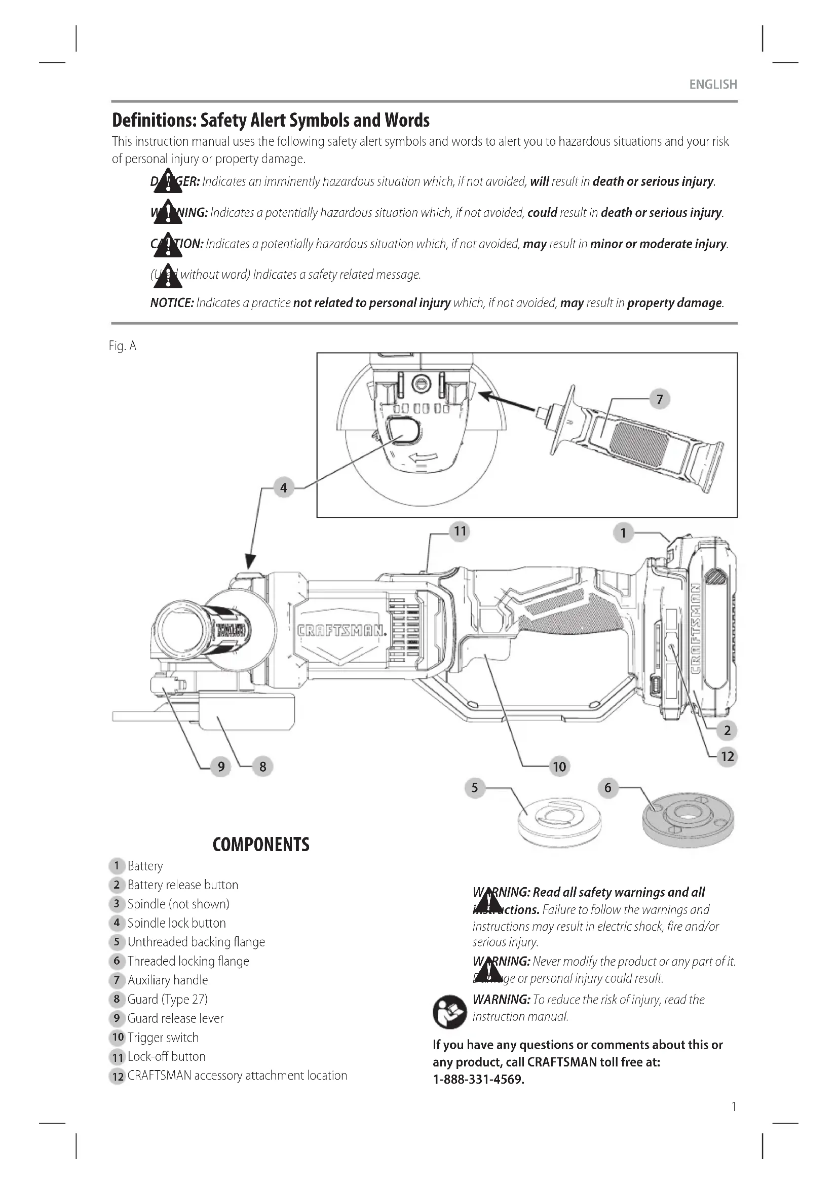 instructionmanual. If you have any questions or comments about this or any product, call CRAFTSMAN toll free at: 1-888-331-4569. Definitions: Safety Alert Symbols and Words This instruction manual uses the following safety alert symbols and words to alert you to hazardous situations and your risk of personal injury or property damage.