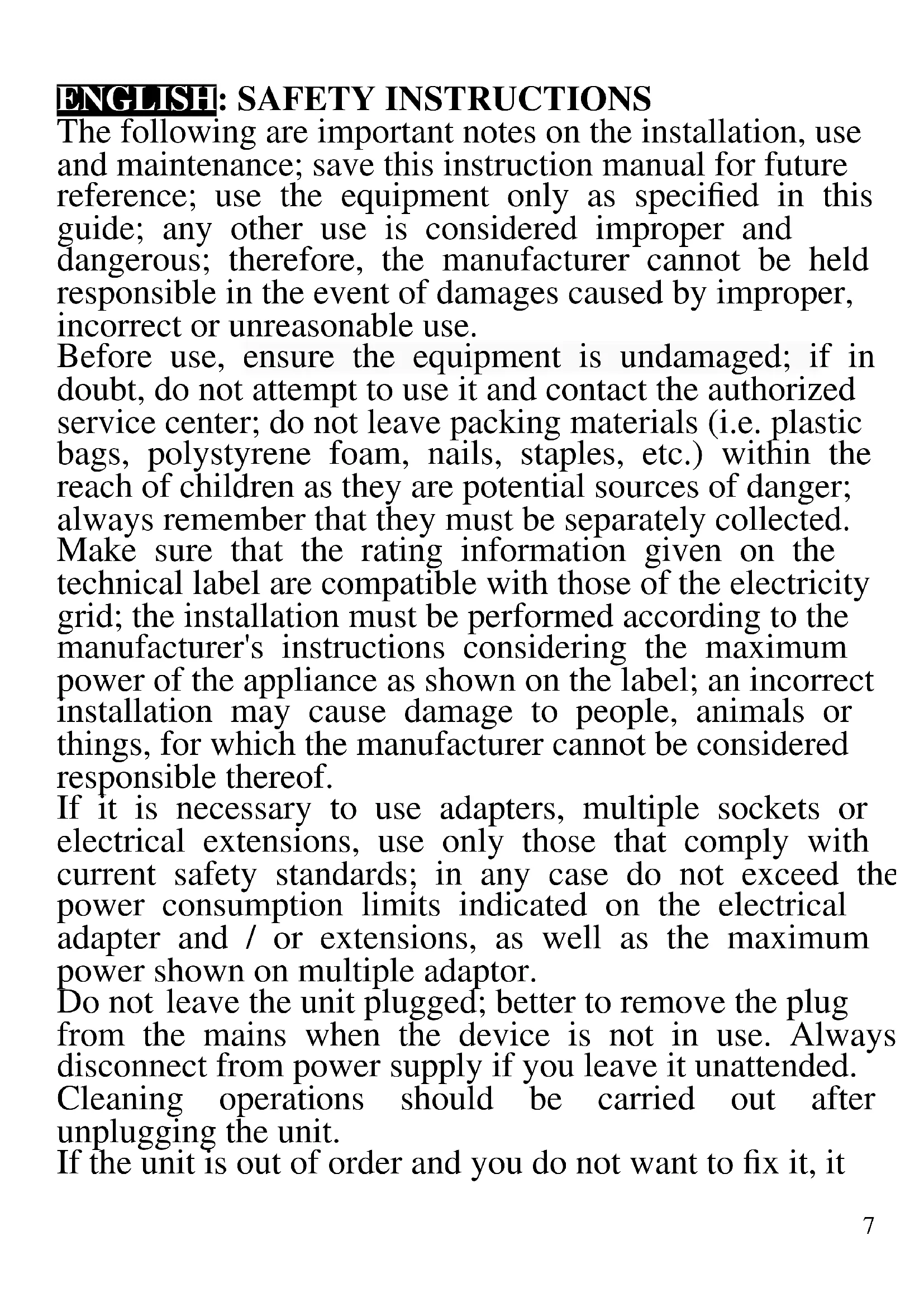 ENGLISH: SAFETY INSTRUCTIONS
