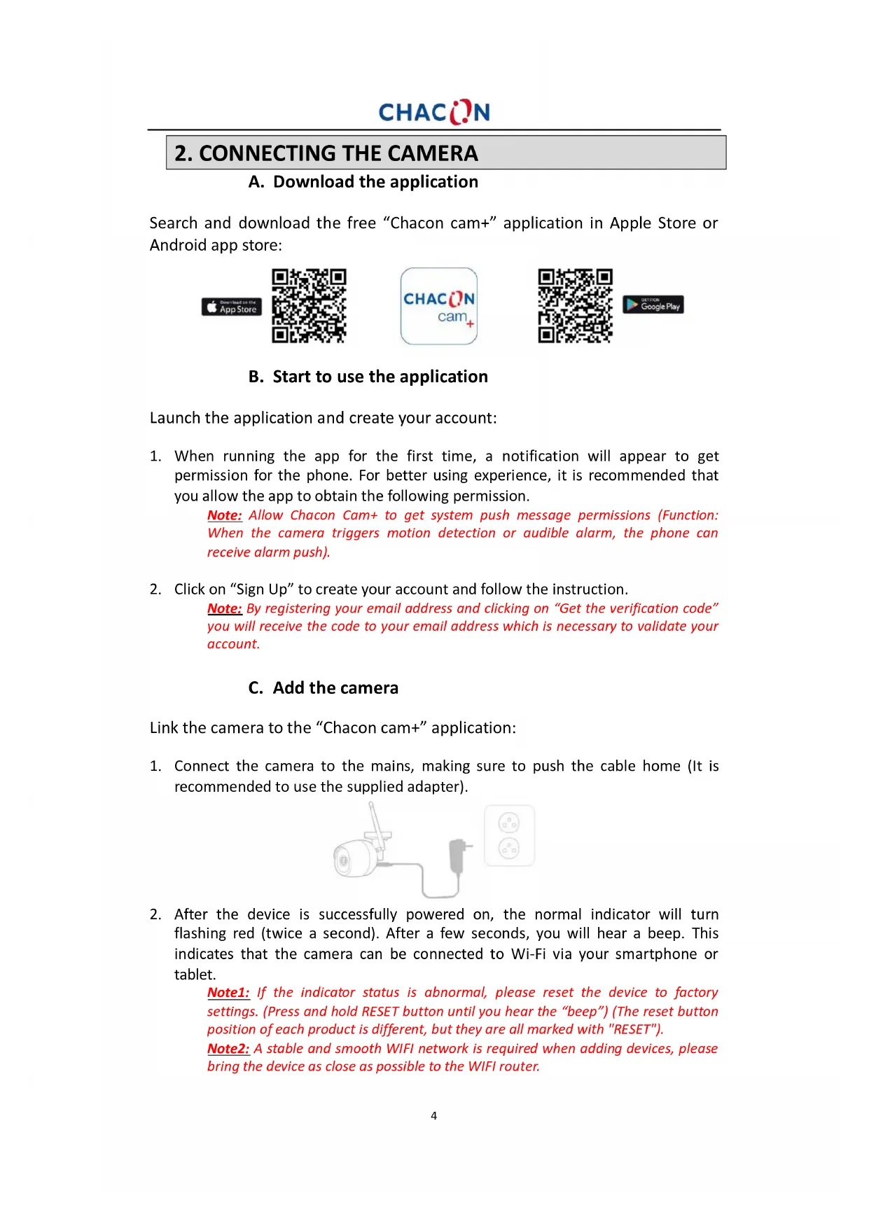 A. Download the application Search and download the free “Chacon cam+” application in Apple Store or Android app store: