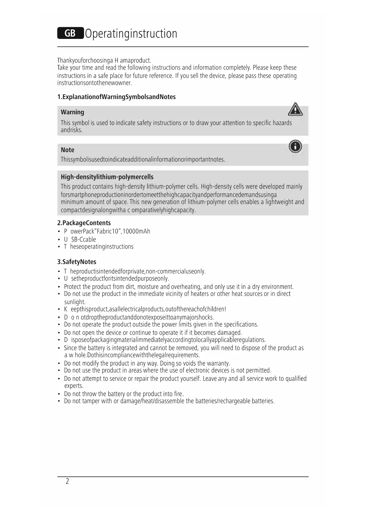 “Fabric 10” Power Pack2 Thank you for choosing aHama product. Take your time and read the following instructions and information completely.Please keep these instructions in asafe place for futurereference. If you sell the device, please pass these operating instructions on to the new owner.