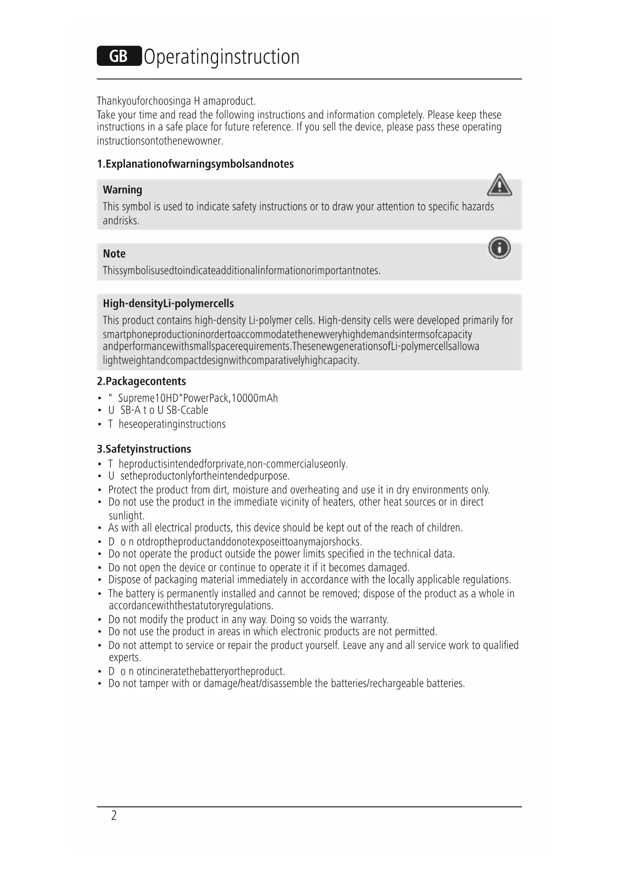 Download the instructions for your Power bank in PDF format for free! Find your manual Supreme 10HD 00187291 - HAMA and take your electronic device back in hand. On this page are published all the documents necessary for the use of your device. Supreme 10HD 00187291 by HAMA.
