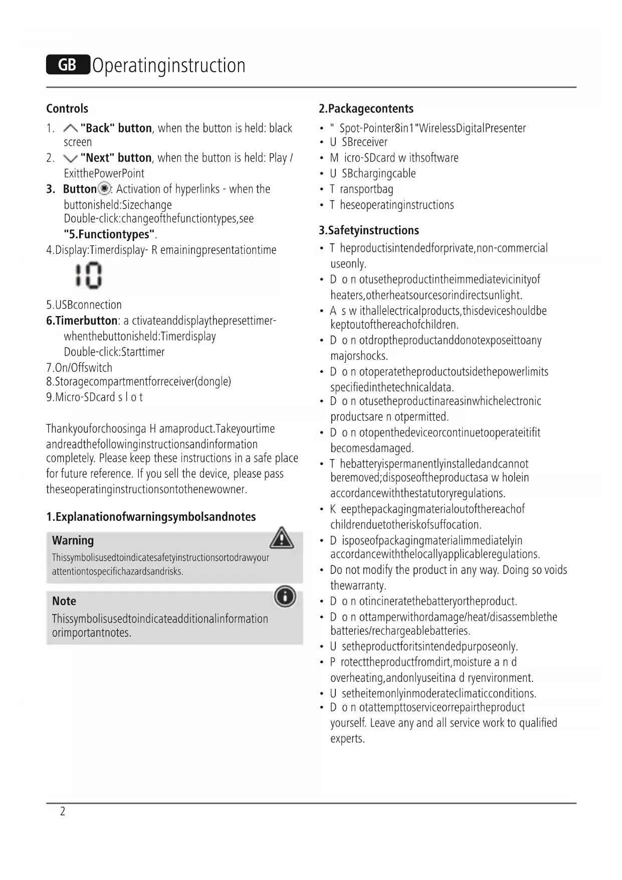 - Protect the product from dirt, moistureand overheating, and only use it in adry environment.
