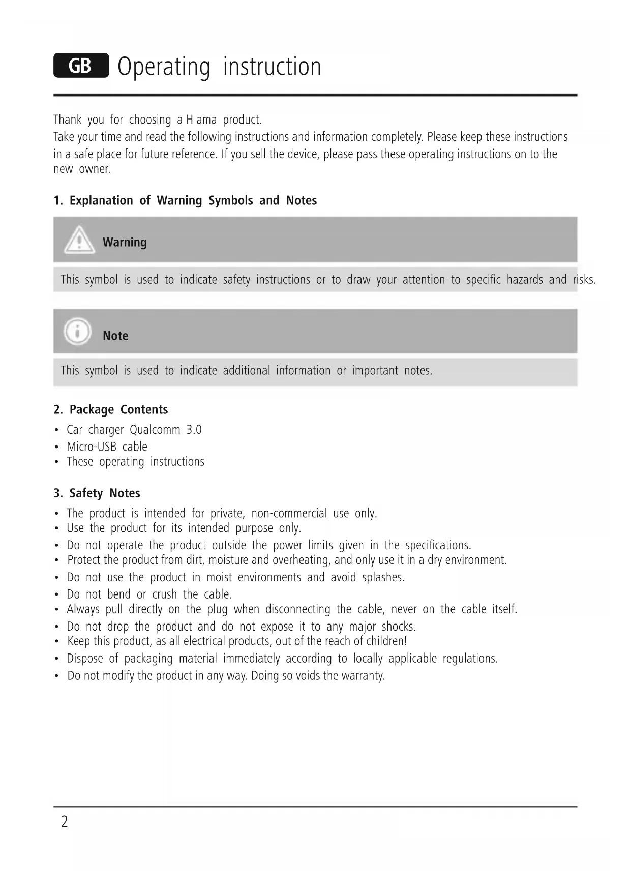 - Do not modify the product in any way.Doing so voids the warranty. G Operating instruction3 Note
