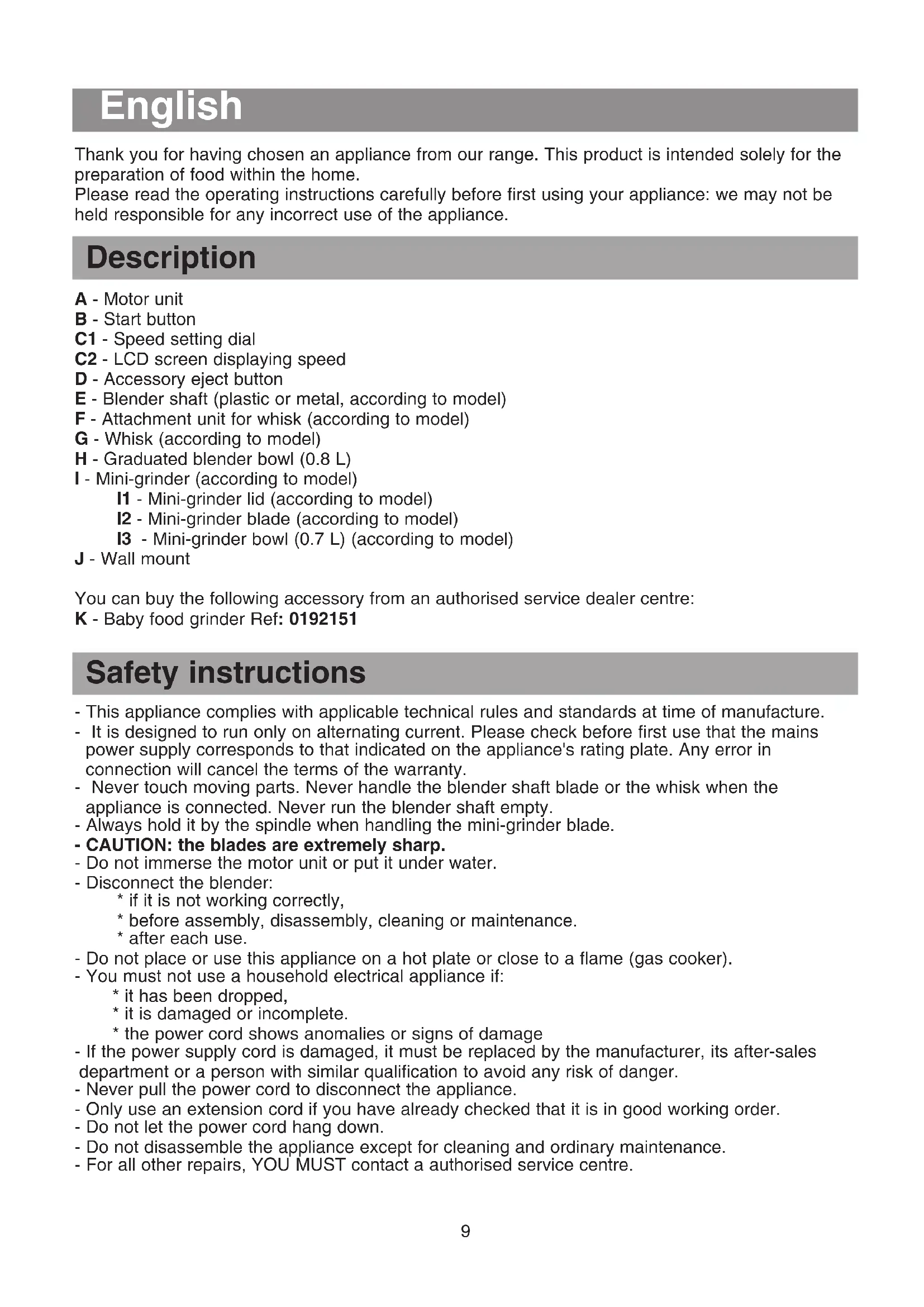 GPA140 - Hand blender KRUPS - Free user manual and instructions